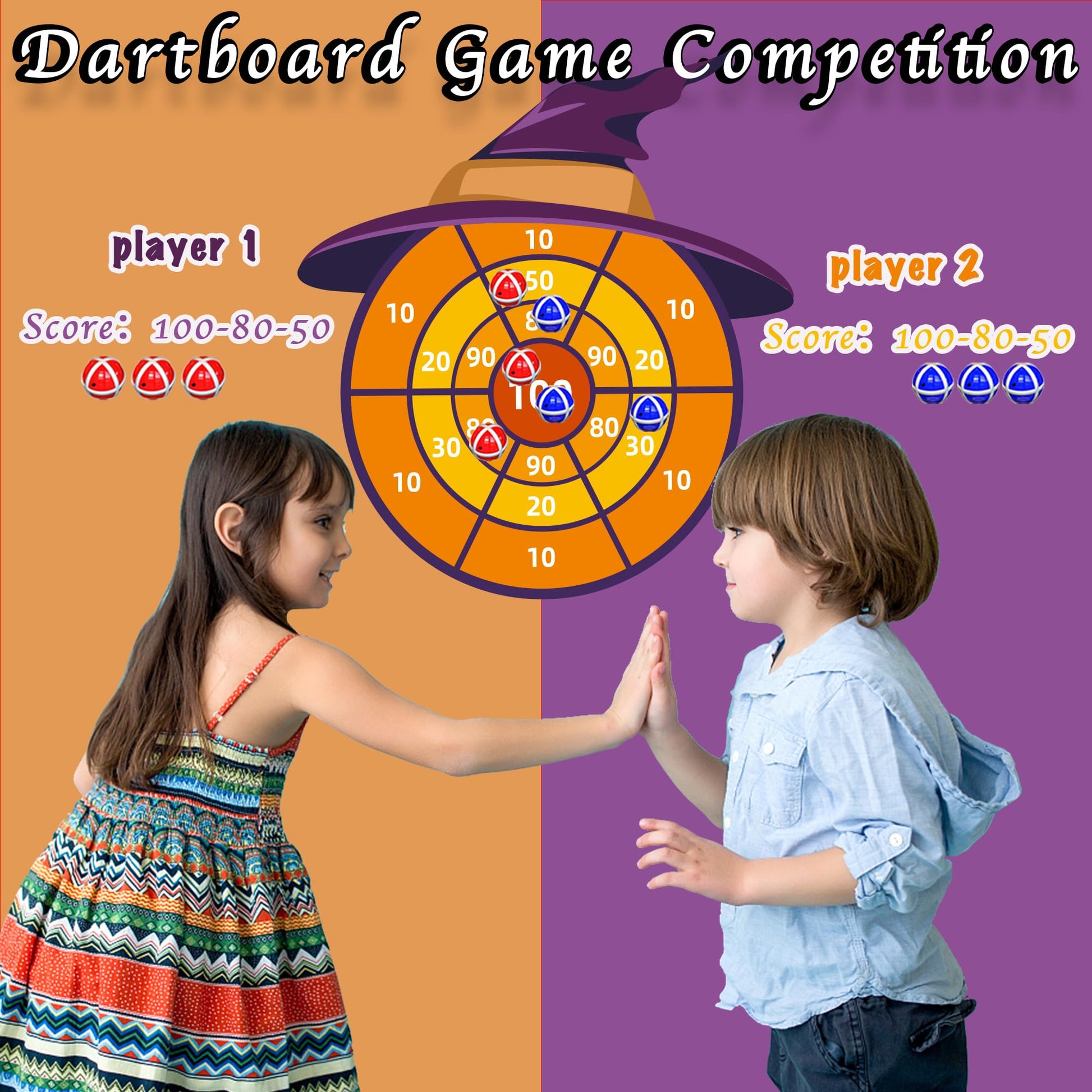 - 【GREAT GIFTS IDEA】If you are confused about the upcoming Halloween, Christmas or your kid's birthday, this witch hat dartboard is best ideal gifts for 3 4 5 6 7 8 9 10 11 12 years old boys and girls. Perfect gifts for Halloween, Birthday, Easter, Christmas,Thanksgiving, Valentines, and other holidays. Great stocking basket stuffers and funny indoor and outdoor games.