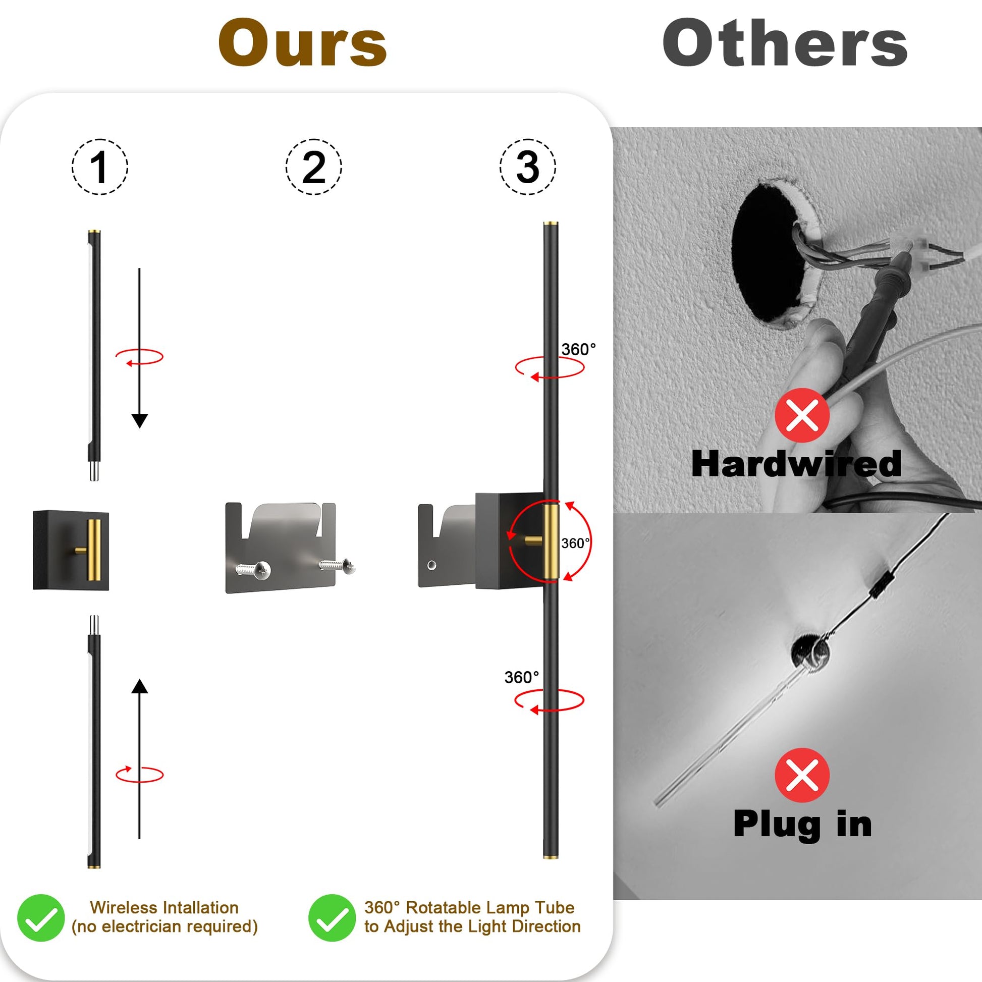 - Upgraded Wireless, 3-in-1 Easy Installation- Enjoy hassle-free, wireless installation with a creative 3-part design. Both the lamp and light tube rotate 360°, and the detachable tube offers flexibility. The wireless setup ensures simple mounting without the need for complex wiring.