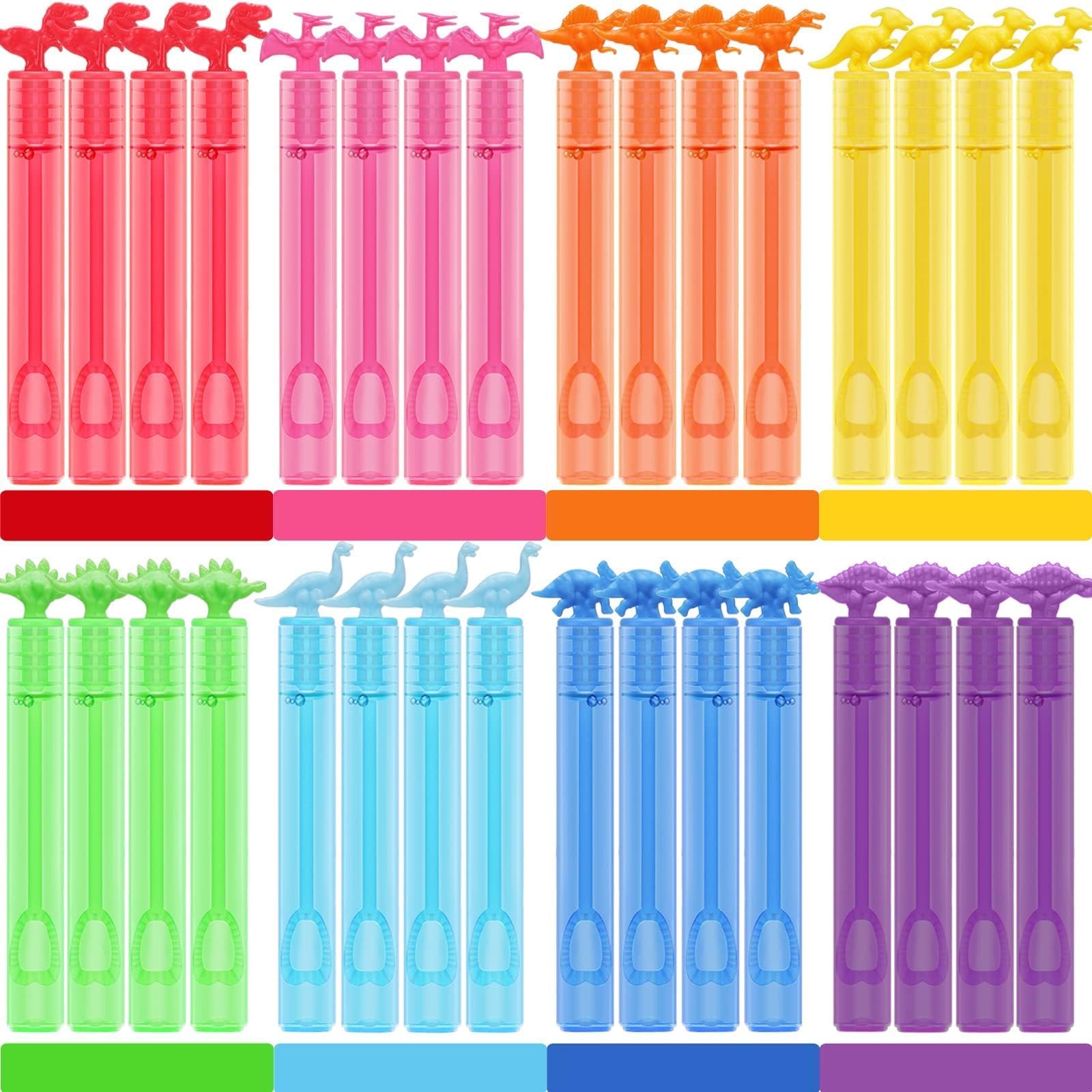 - Value with gift box - Including 32 PCS with 8 Style mini dinosaurs bubbles with specially design, Fun toy for summer and bath time activities. Children can easily blow out colored bubbles in the sun.