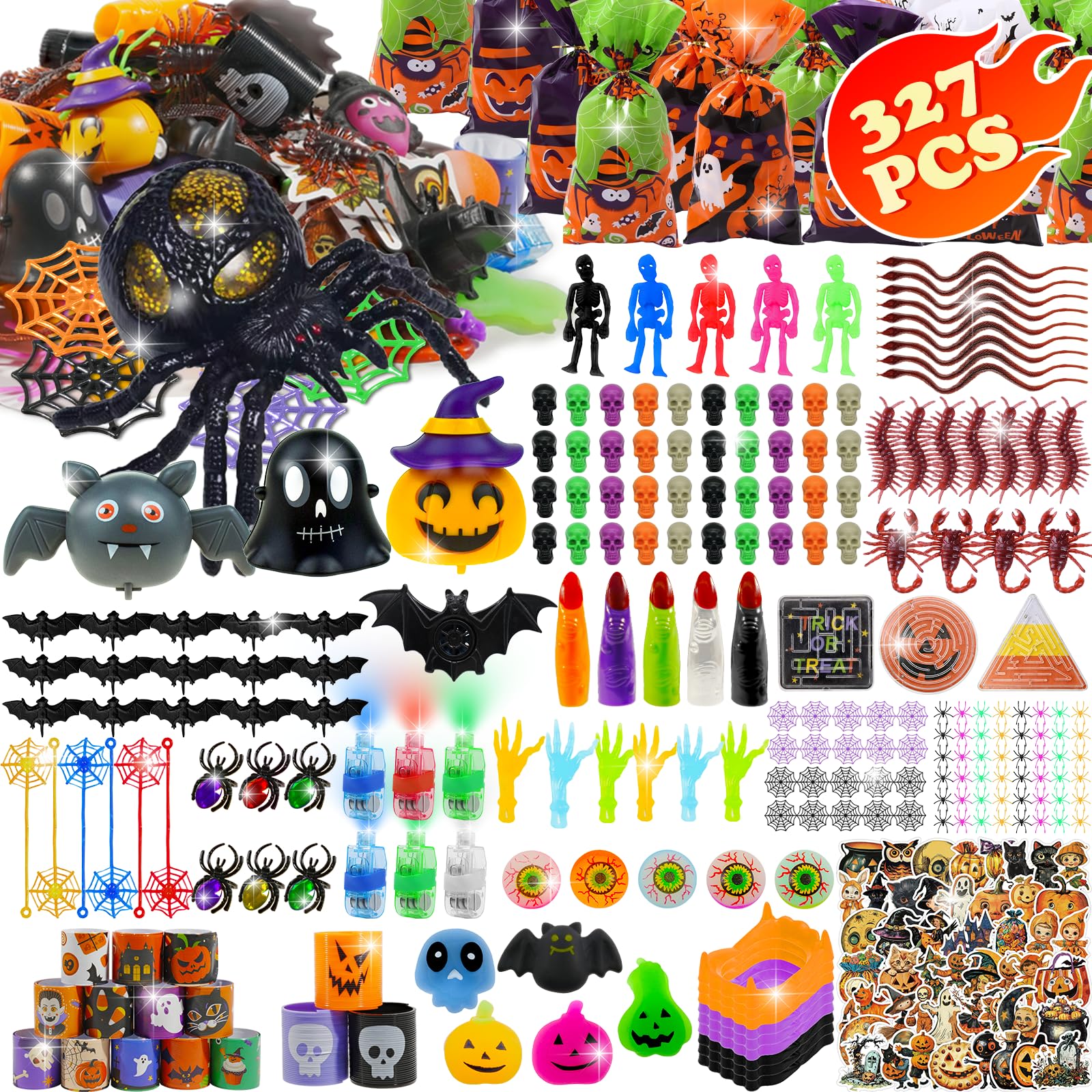 327 PCS Halloween Party Assortment Bulk Goodies Party Bags Fillers Stuffers for Halloween Decoration