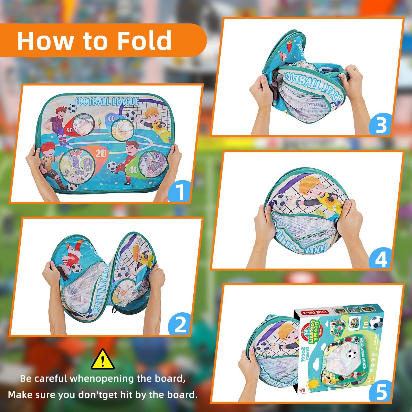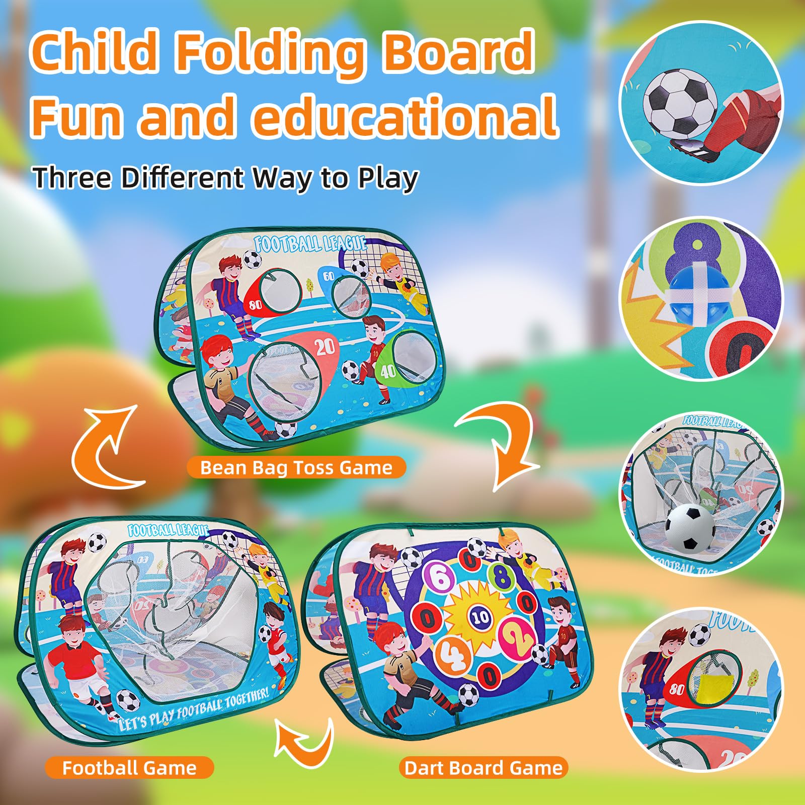 - Large Size Bean Bag Toss Game Toy: The ample playing area, with its 32-inch by 22-inch dimensions, can also be configured into a mini soccer goal, allowing your children to revel in the thrill of scoring goals. This bean bag toss game board an ideal space for kids to practice their soccer skills and have a blast with shooting games, making it a perfect addition to any outdoor playtime.