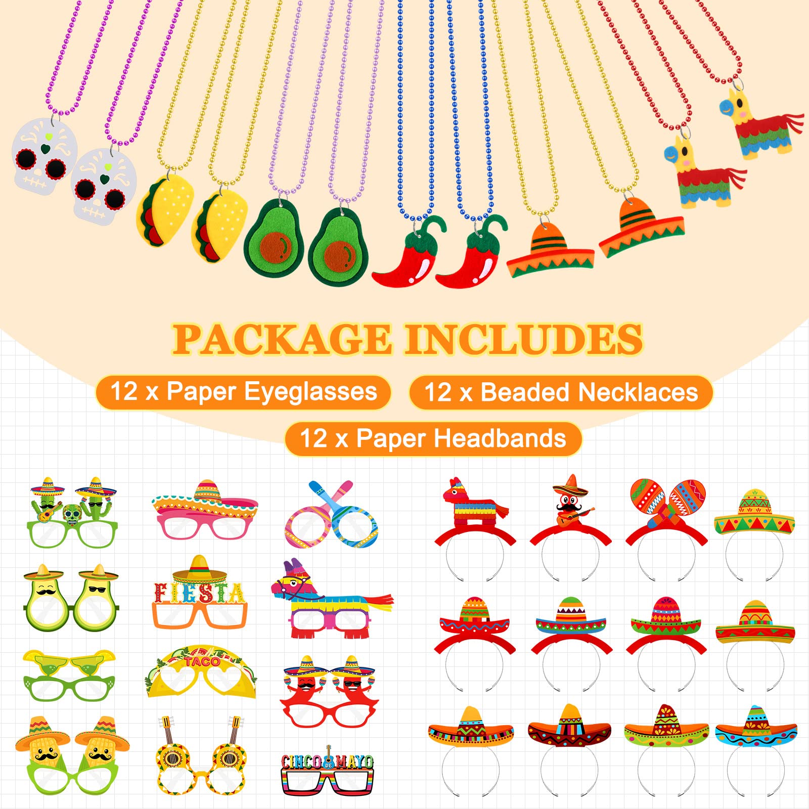 - Fiesta Party Favors: you will receive 12 pairs of fiesta sunglasses, 12 pieces of beaded necklaces, 12 pieces sombrero cardboard headbands, rich and full of strong party atmosphere, offer you a variety of options to match with outfits