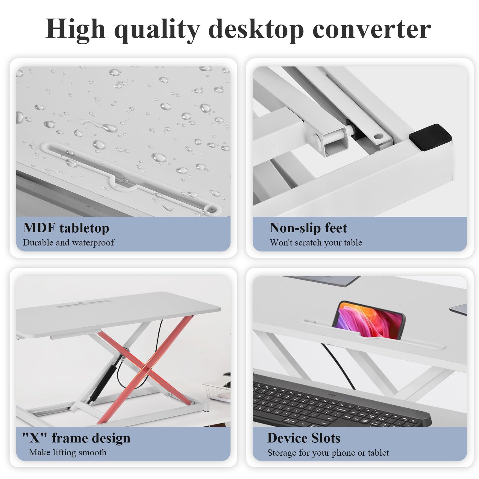 - 【Quick Assembly for Immediate Use】Setting up our Desk Converter is a breeze. Upon receiving your package, attach the keyboard tray and you’re ready to use, no complicated steps required. A comprehensive instruction manual ensures smooth assembly. We have streamlined the process to save you precious minutes, allowing you to center on what really matters: your work