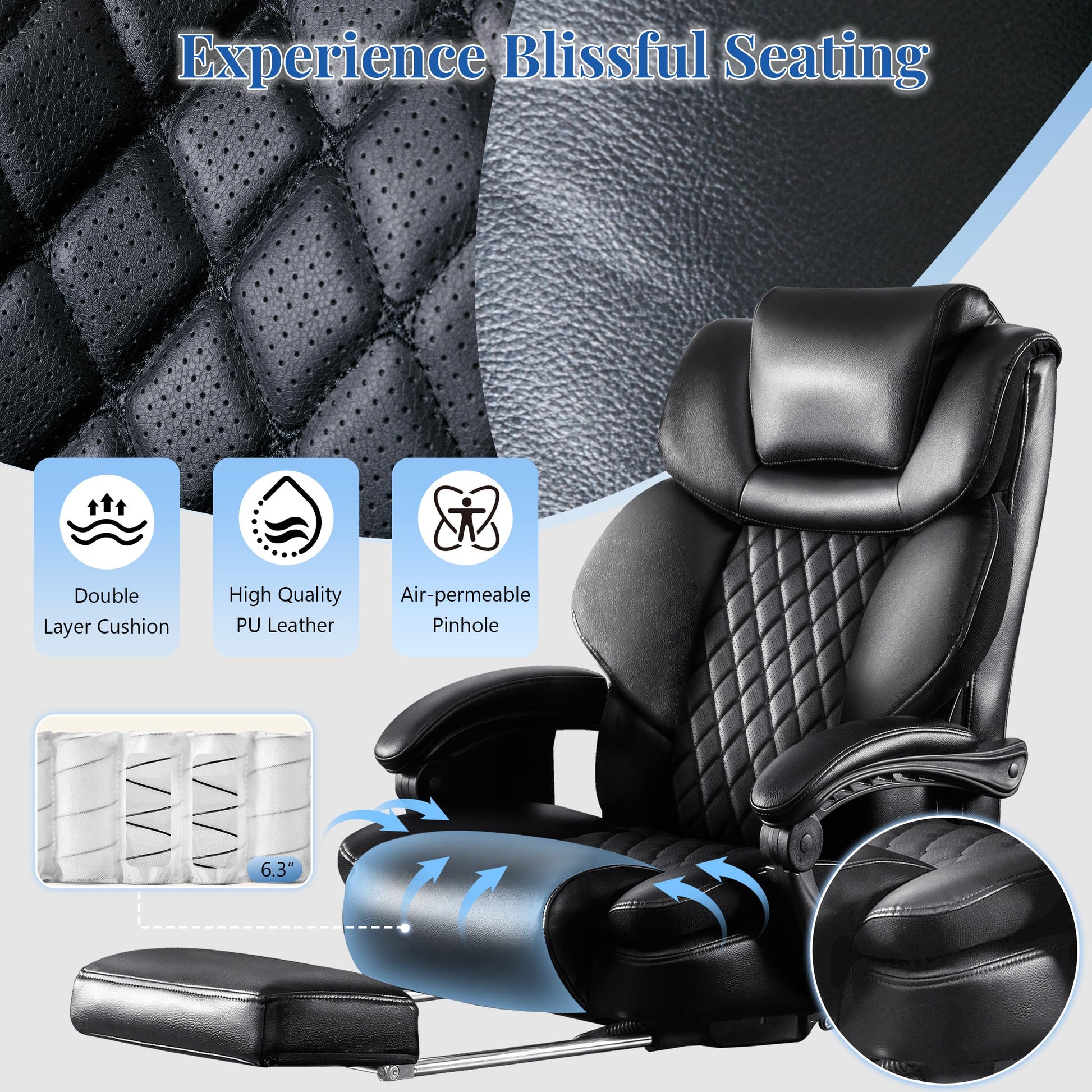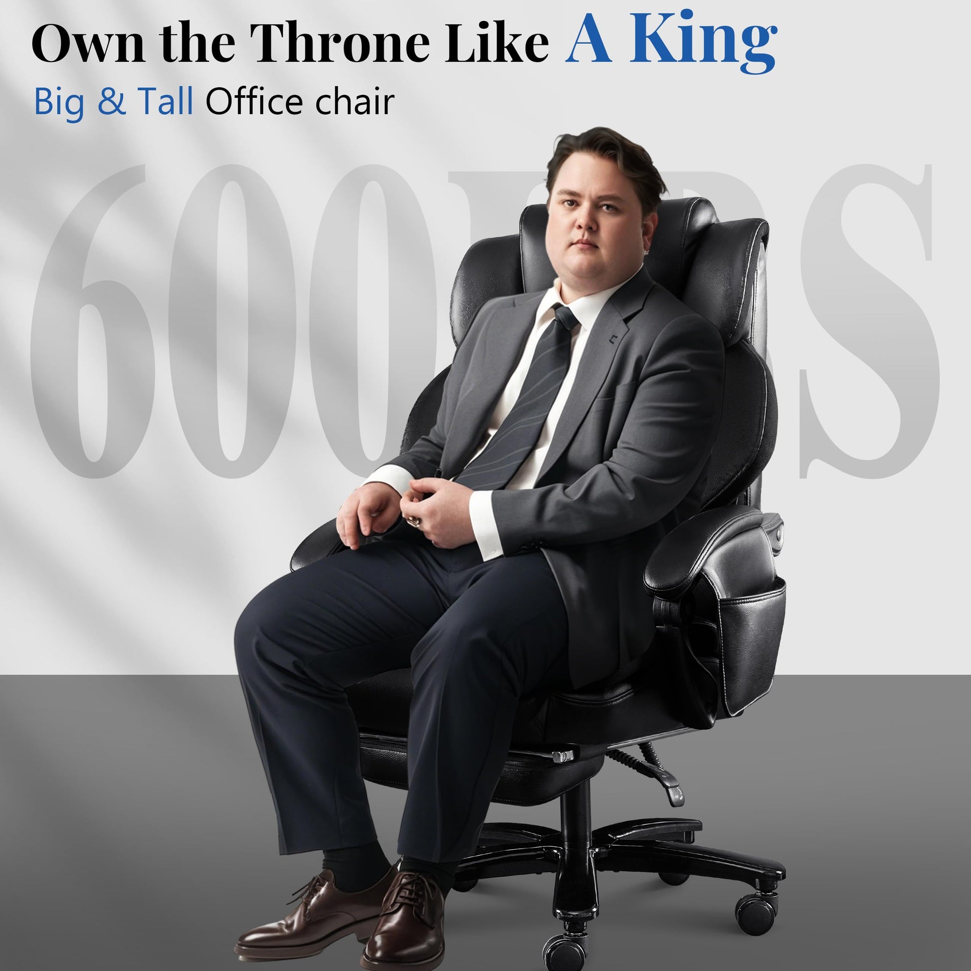 - ✨Built for 600LBS, Adjustable Recliner Chair Loved by All! The Big and tall office chair is more than just a chair, it's also a 600LBS weightlifting champion. You can adjust the height so taller people can customize the perfect sitting experience. The extendable footrest gives your legs the VIP treatment when you relax. Here's a thoughtful tip, if you feel the footrest isn't long enough, you can use reclining backrest that tilts 90°-155°like a bed, freeing up more legroom. Your throne, your call.