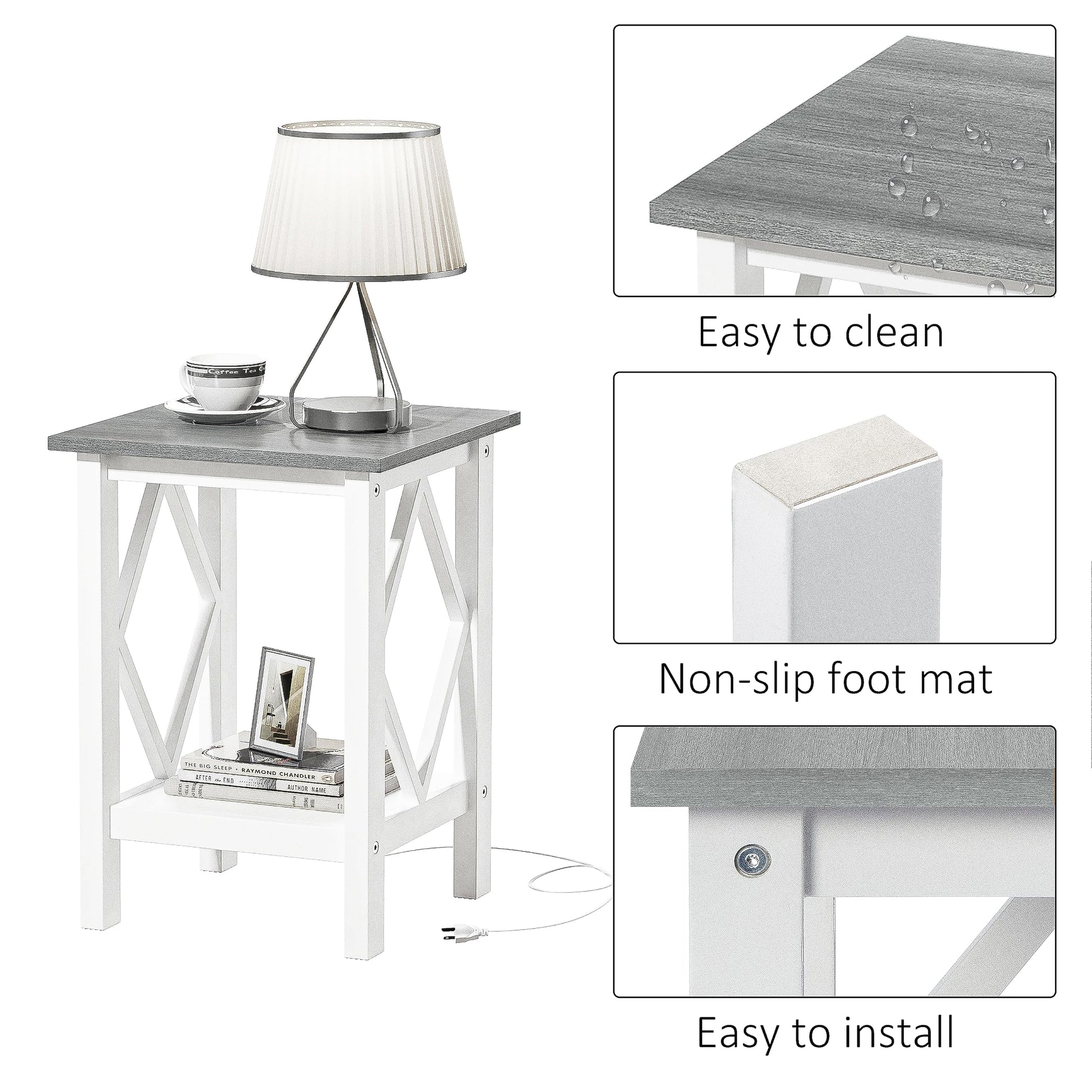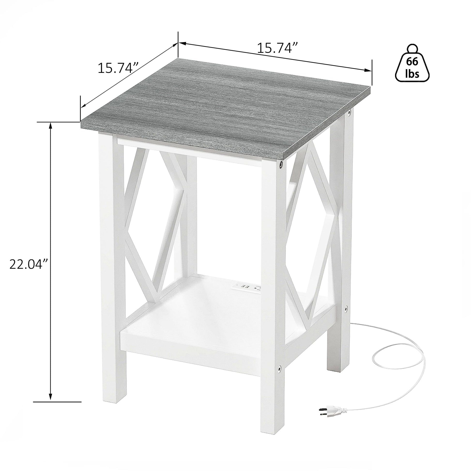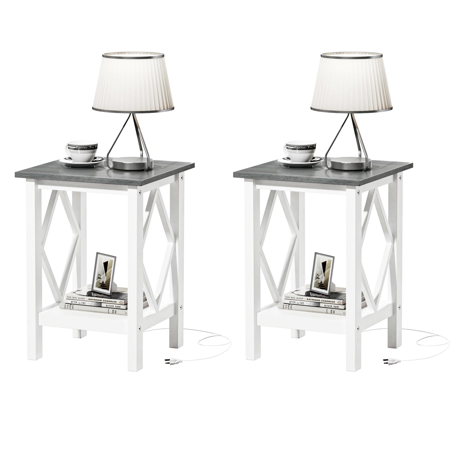 3imothrix Farmhouse End Table Set of 2, Small Side Table with Charging Station, Nightstand Bedside Table with Storage Shelf, USB Ports and Outlets for Small Space Living Room Bedroom