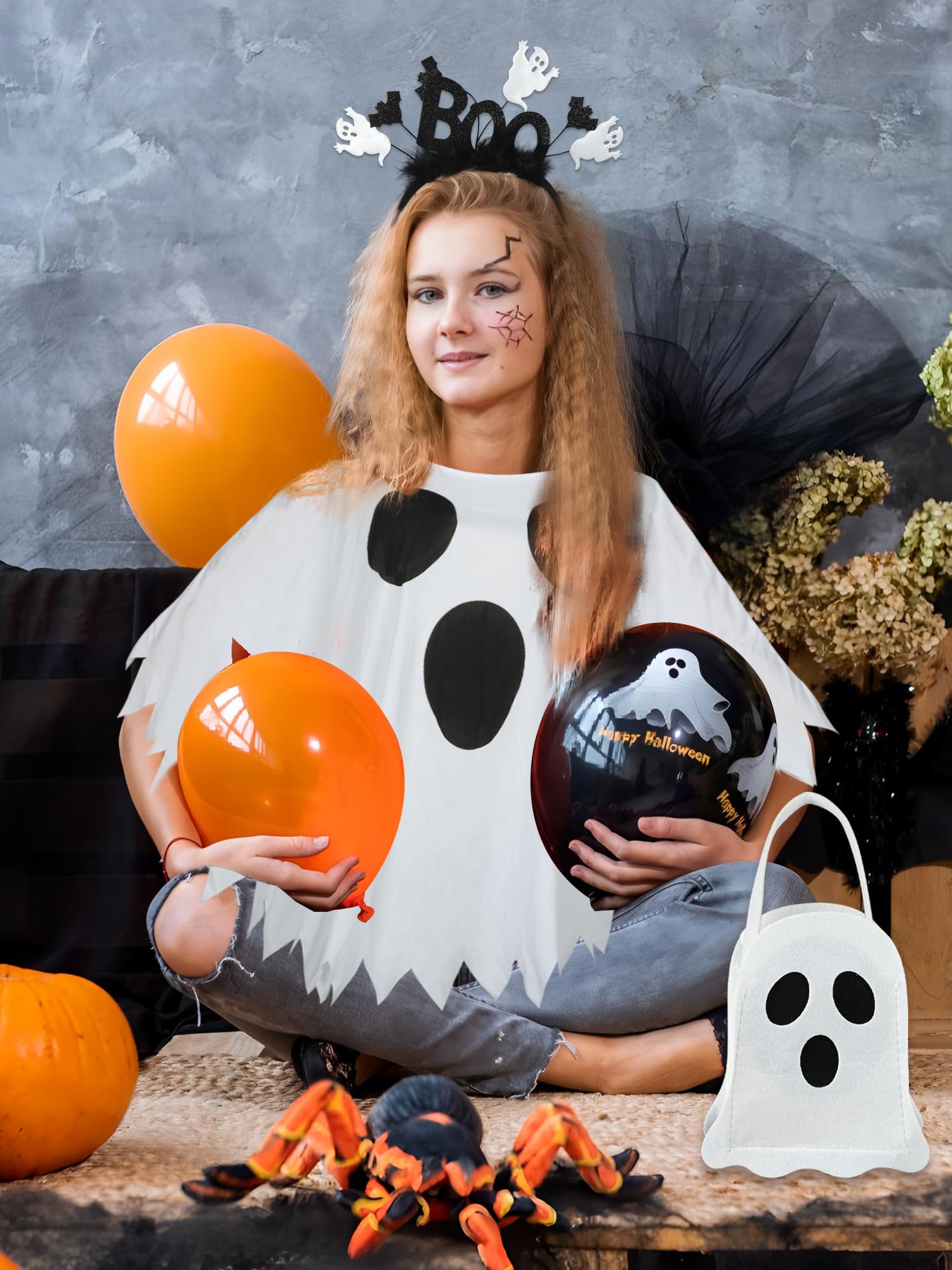 - Package includes:You will receive a halloween ghost costume accessories set, including 1 ghost poncho, 1 ghost boo headband and 1 ghost candy bag. The perfect ghost costume ensures that you have everything for a complete Halloween look.