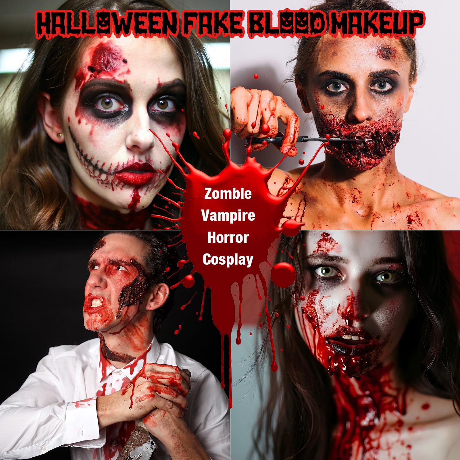 - Safe Ingredients: Blood effect product is crafted with safe ingredients and have a light texture that is harmless to the skin. You can spray or apply it to your body face, arms and legs, perfect for fake blood make-up, avoiding the eyes and mouth when using it.