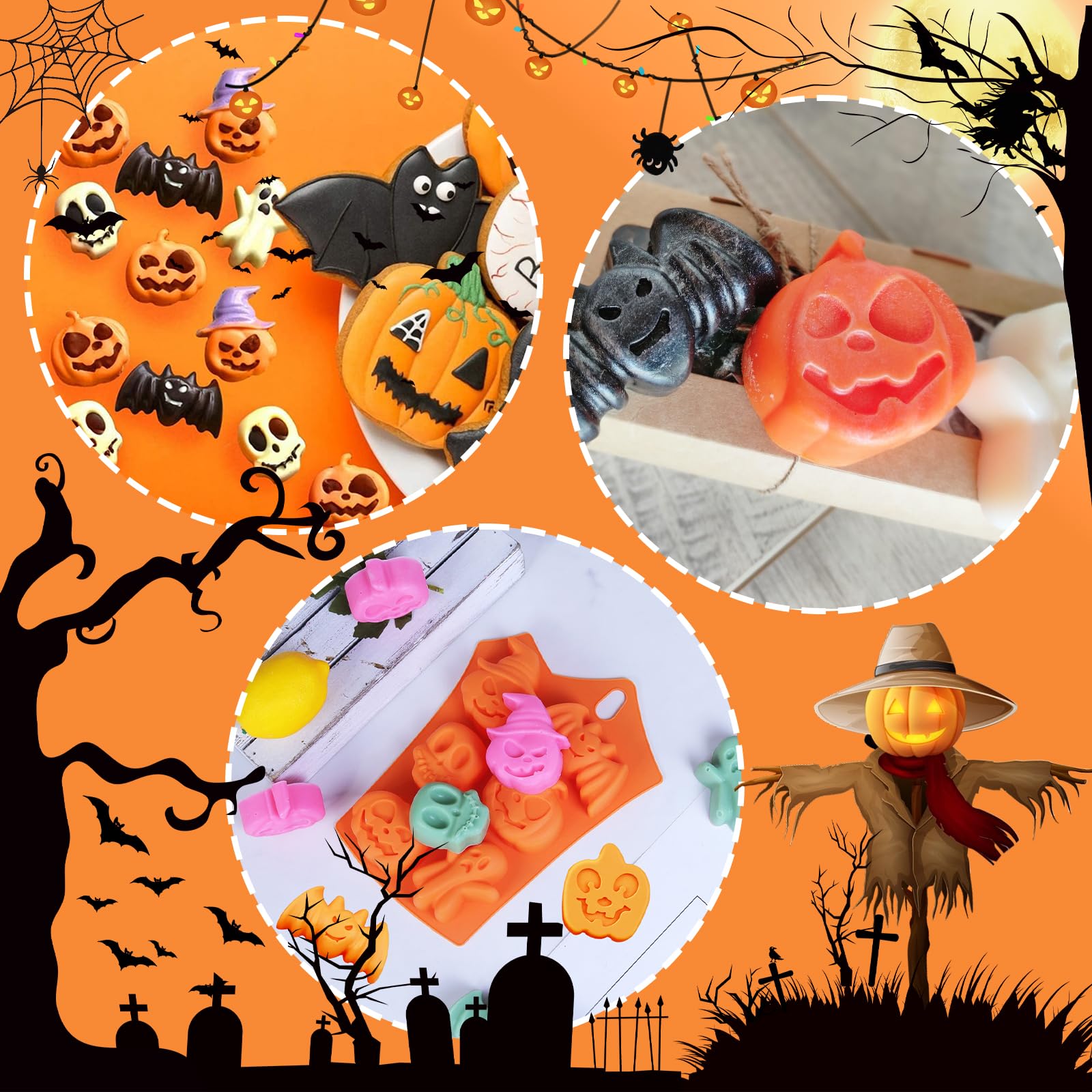 - 【Halloween Silicone Molds】: You will get 3pcs halloween silicone molds; With a great variety of detailed shapes: Pumpkin, Bat, Witch Hat, Skull shapes, you can make many different style of various treats at a time. Moreover, these shapes have crisp detail and cool designs, allow you to showcase your delicacy in a highly-attractive manner in the halloween.
