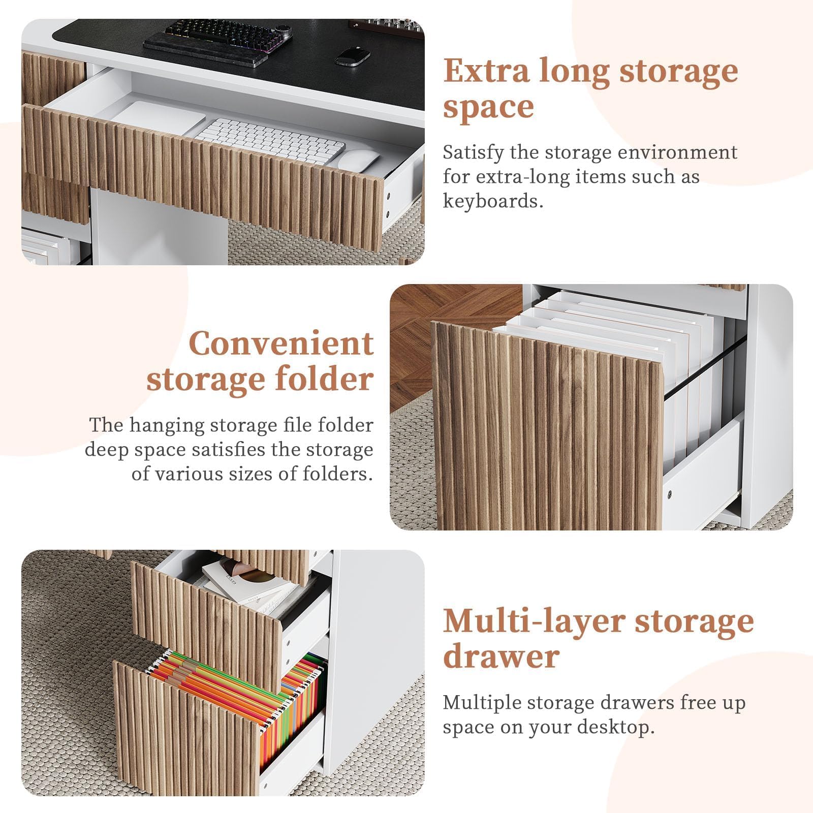- Modern Simple Design: The elegant and tidy white with the simple and gentle light wood color creates a elegant serene for this white desk with storage. The wave-shaped drawer surface without handles is designed to highlight the modern style. Such a computer desk can bring room feel peace and happiness.