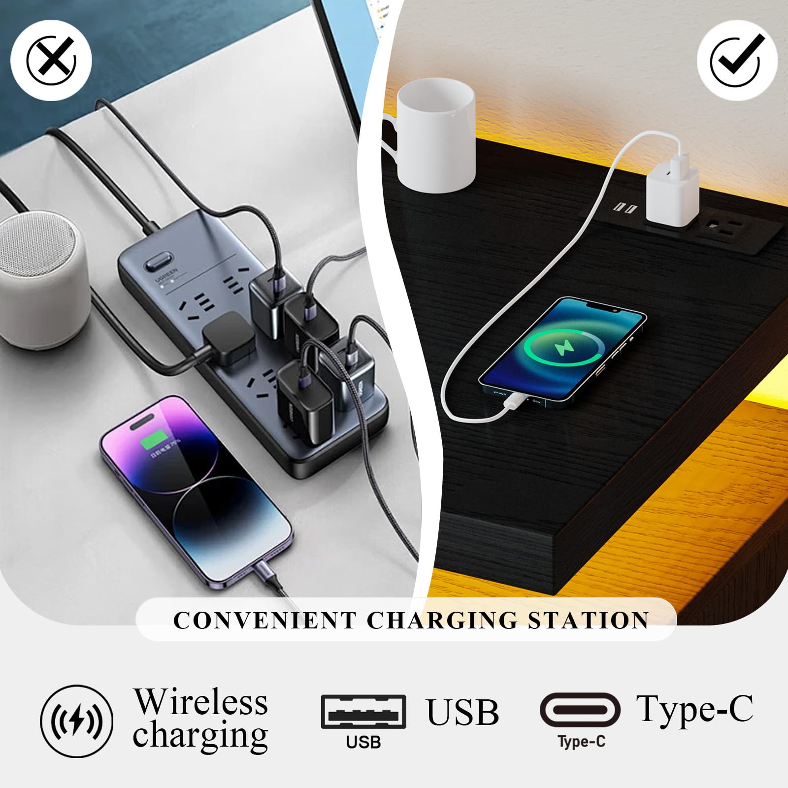 - Integrated Charging Station for Daily Convenience: Discreetly integrated USB ports and AC outlet provide convenient charging without disrupting your decor. Perfect for powering everyday devices while maintaining a clean, modern aesthetic