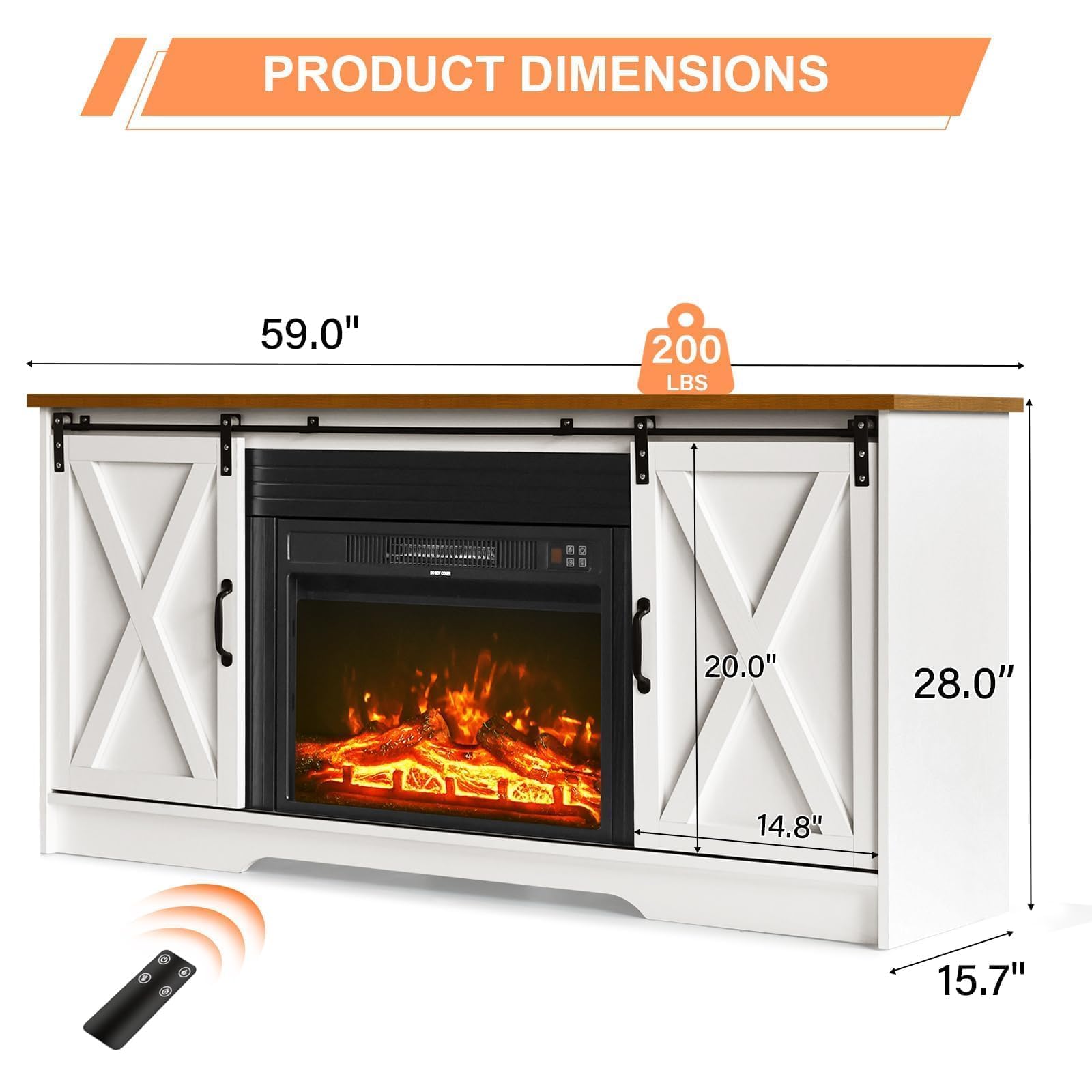4 EVER WINNER Fireplace TV Stand with Sliding Barn Door for TVs up to 65", Farmhouse 59“ Entertainment Center with Adjustable Storage Cabinets, TV Console Table for Living Room, White
