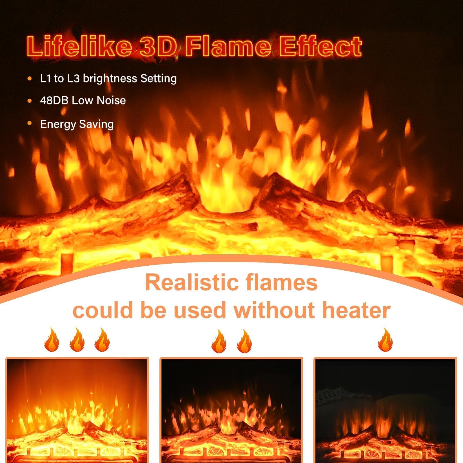 - 23“ Electric Fireplace: The tv stand with fireplace adopts LED technology and has 3 flame brightness settings, making the light more like a realistic burning flame. The remote control makes it easier for you to control the white entertainment center