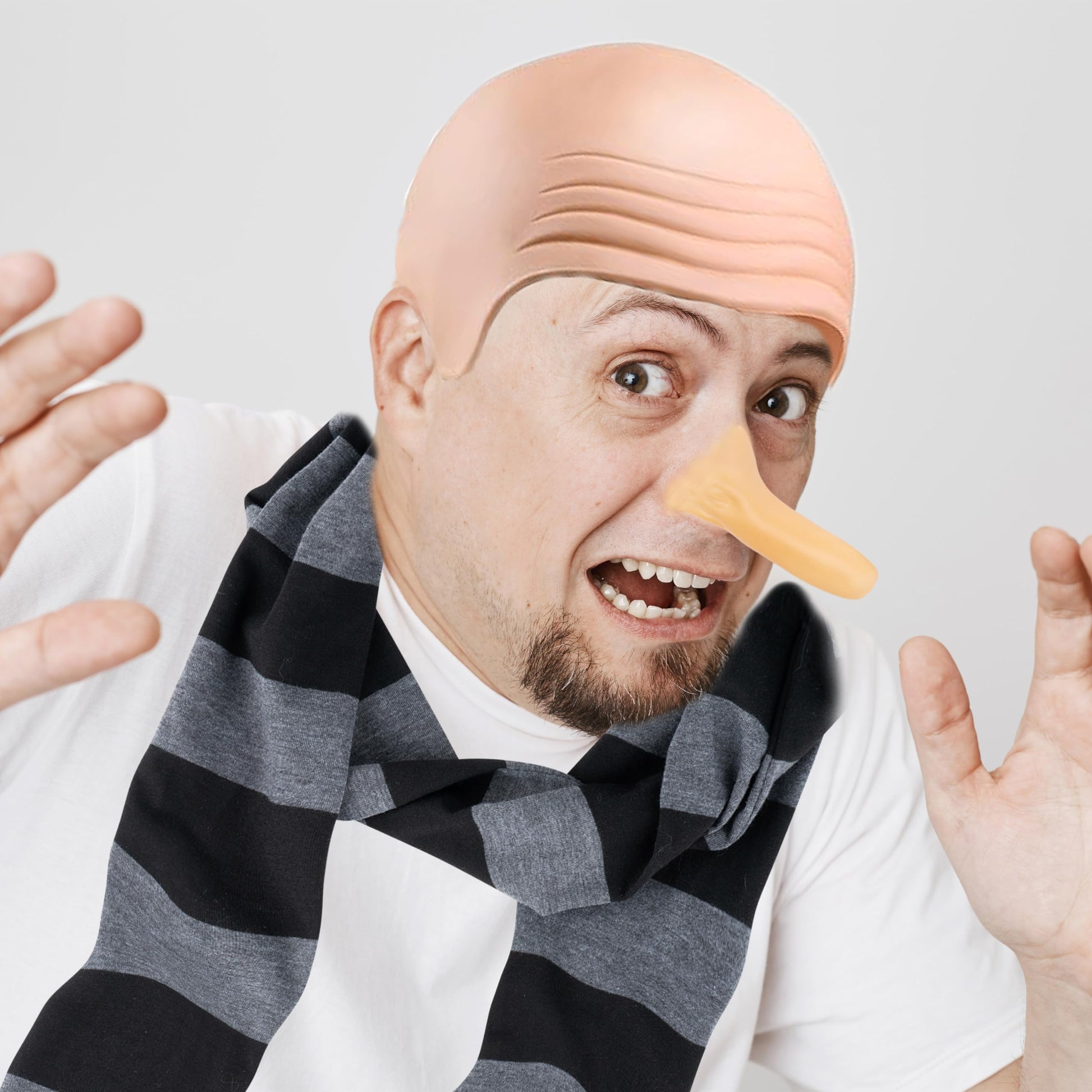 - HIGH QUALITY- The bald head cap is not thin, easily cover the hair and provide a natural looking, come with a mesh wig cap, and help to hold your hair in place. The bald hat and the long nose are made of quality latex material, elastic and easy to clean.