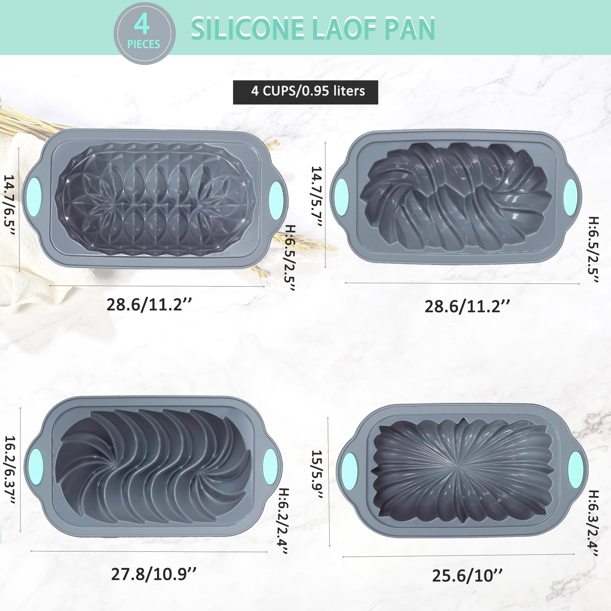 4 Piece Silicone Loaf Pan for Baking Bread, Non-Stick Kitchen Oven Bread Pan, Perfect for Banana Bread, Sandwich Bread, Pound Cake and Meatloaf, 4 Cups, Grey