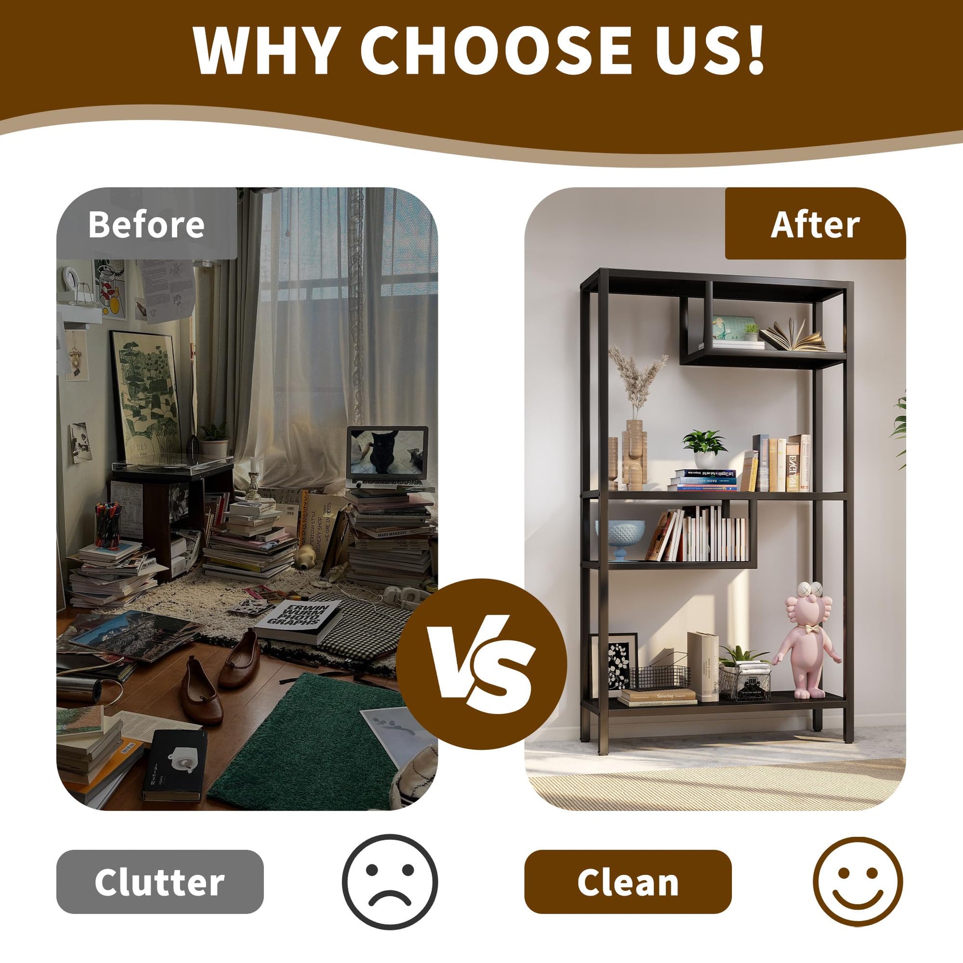 - 【Spacious Open Design】With its roomy, open layout, this bookcase maximizes storage without feeling cramped. The airy structure allows for easy visibility and access to your belongings, saving you time while keeping your living room, bedroom, or office clutter-free