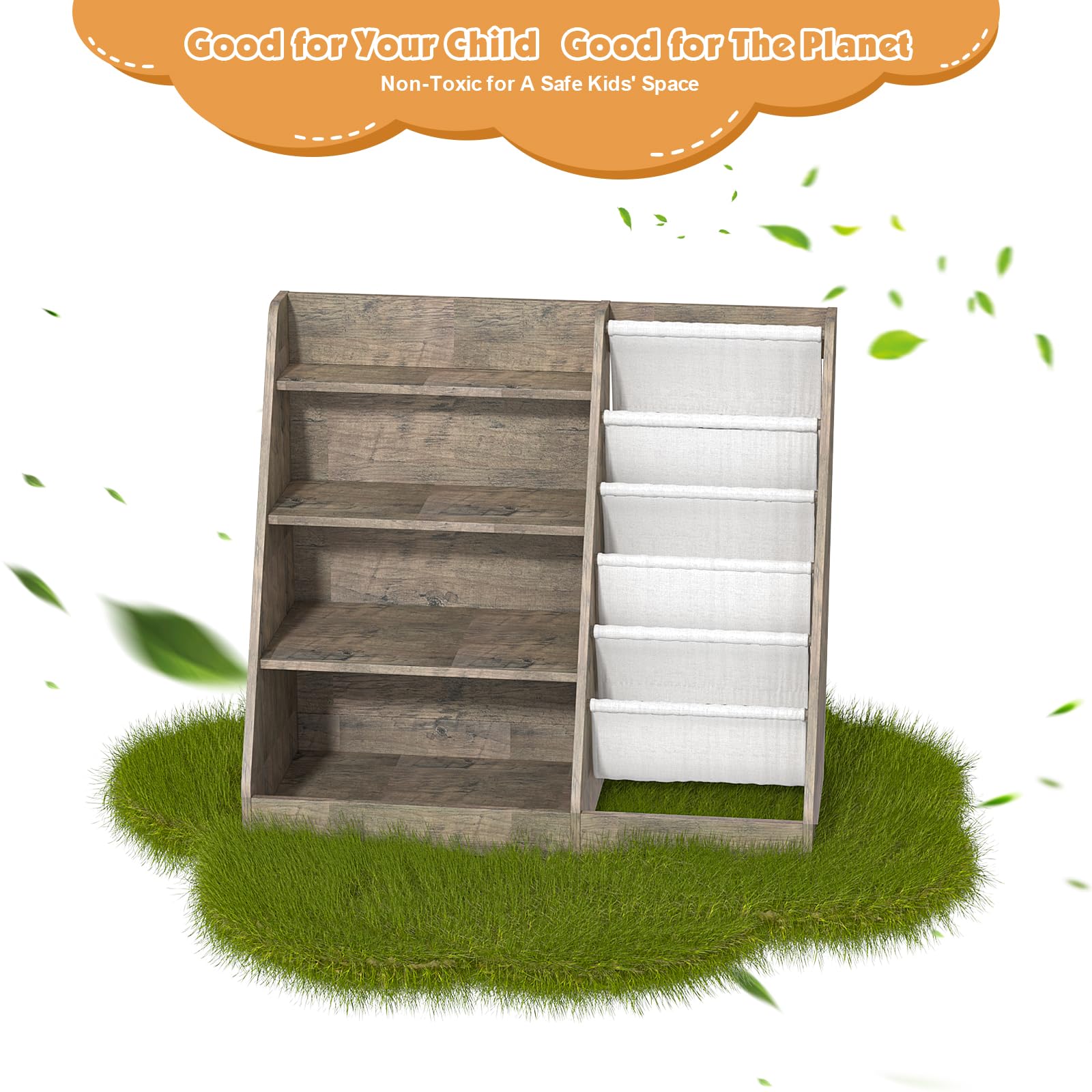 - Natural Eco-Friendly Material: Bookshelf organizer for kid is constructed with high quality particle board and cotton linen fabric. Holding heavy book without rip apart. Your kids keep away from chemical hazard. The loading bearing can hold maximum 66lbs. Kid-sized Book Rack with Round Corner: Kids room bookshelf is just right height for children to safely grab and put away their favorite books independently. The corner of book rack are round to protect kids from sharp edge in case of stumble.