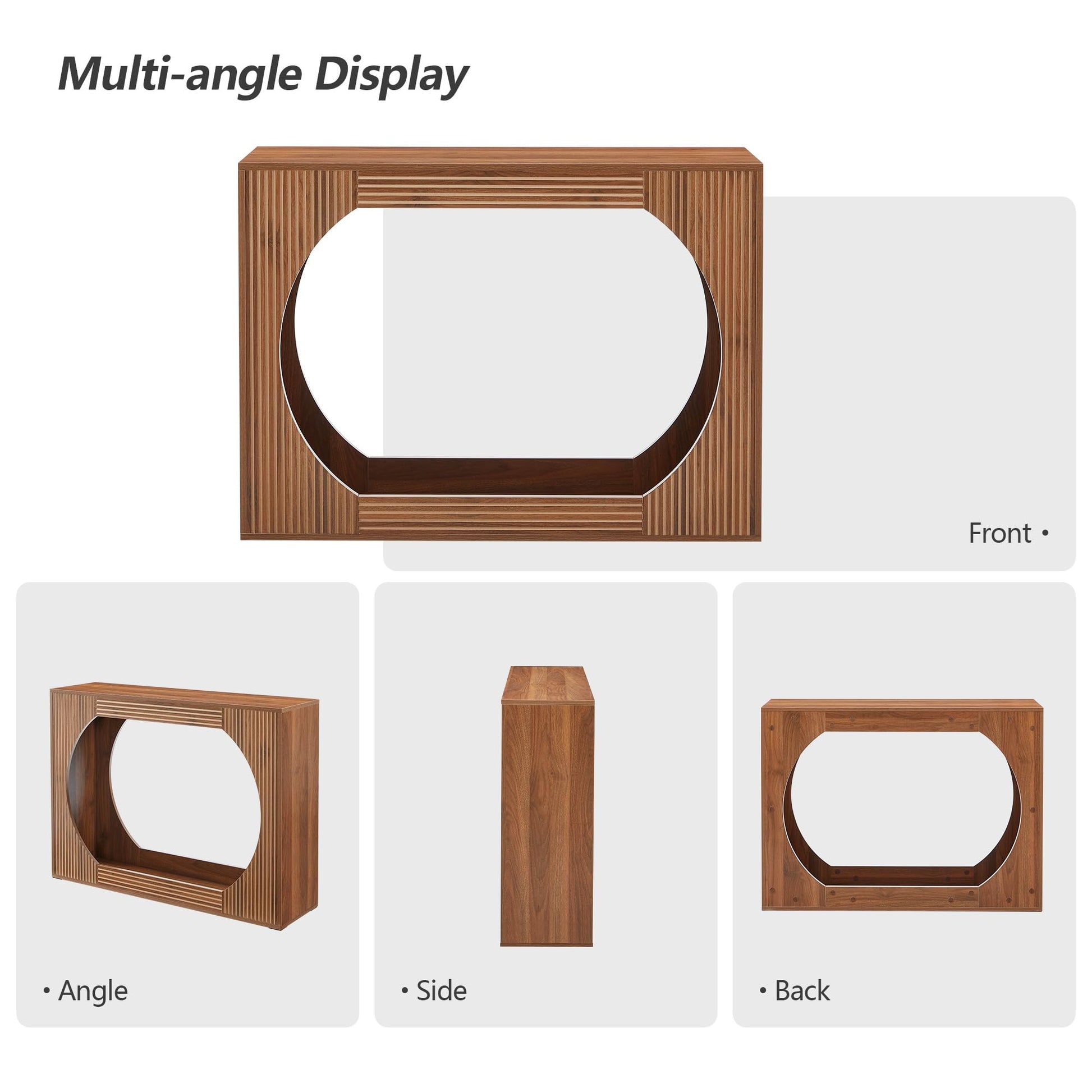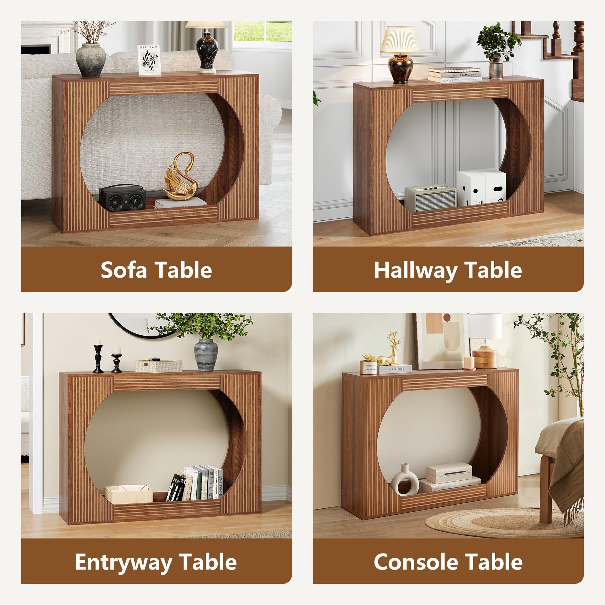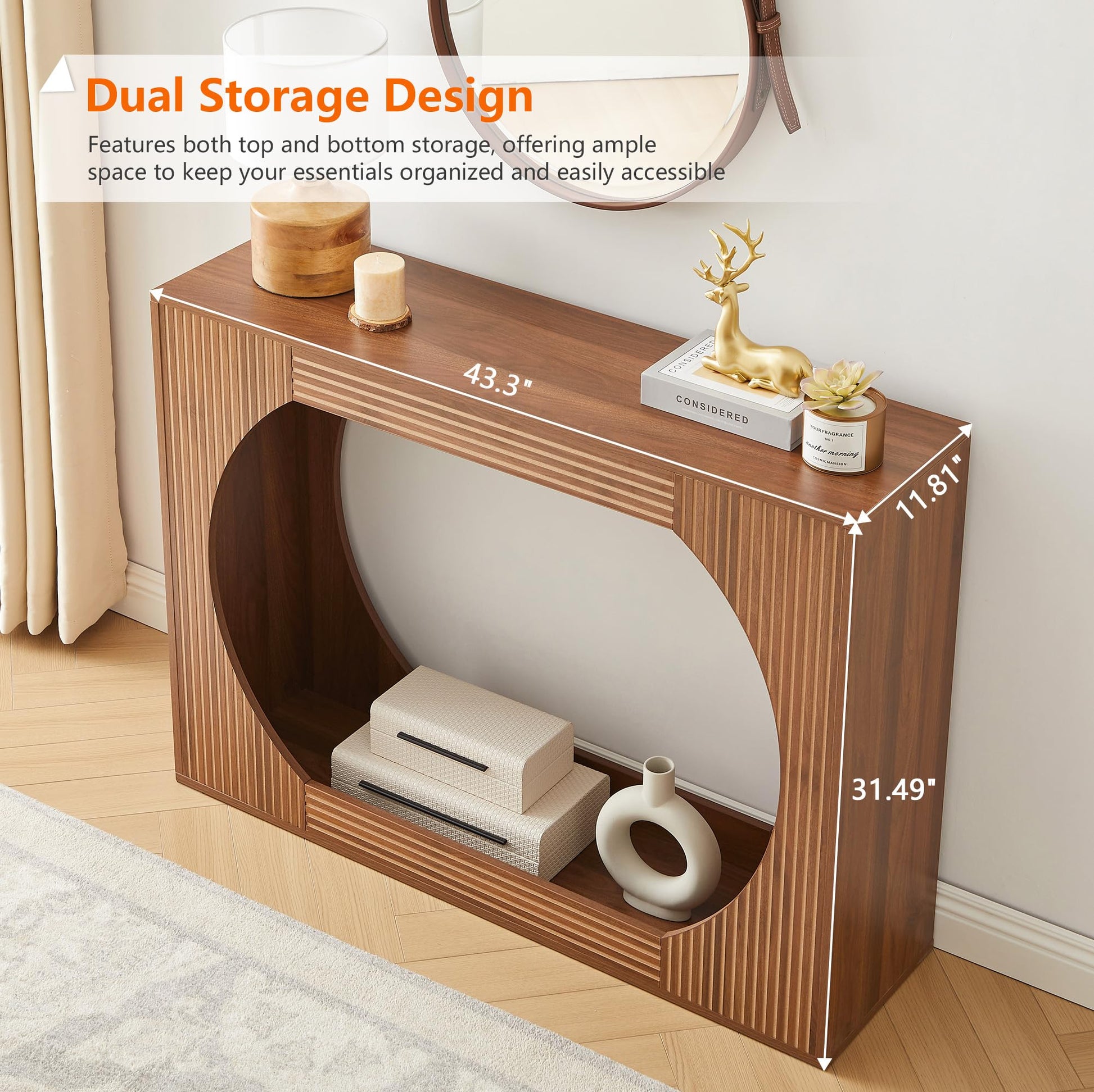 43.3" Console Table with Storage, 2-Tier Wooden Entryway Table with Carving Lines, Mid-Century Modern Accent Rectangular Sofa Table Behind Couch for Foyer, Entrance, Living Room, Hallway (Walnut)