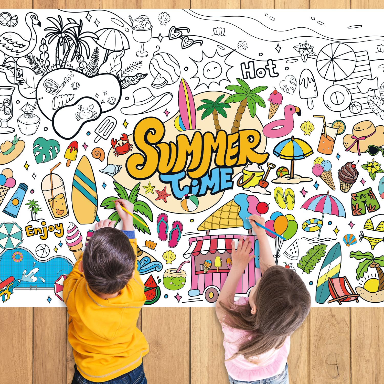 - Package Include: It contains 1pcs 43.3x31.5Inch summer pattern giant coloring poster and reference drawing. The large size can be used by at least one child. So you can do it at home with your children, or you can have children do it together at family gatherings.