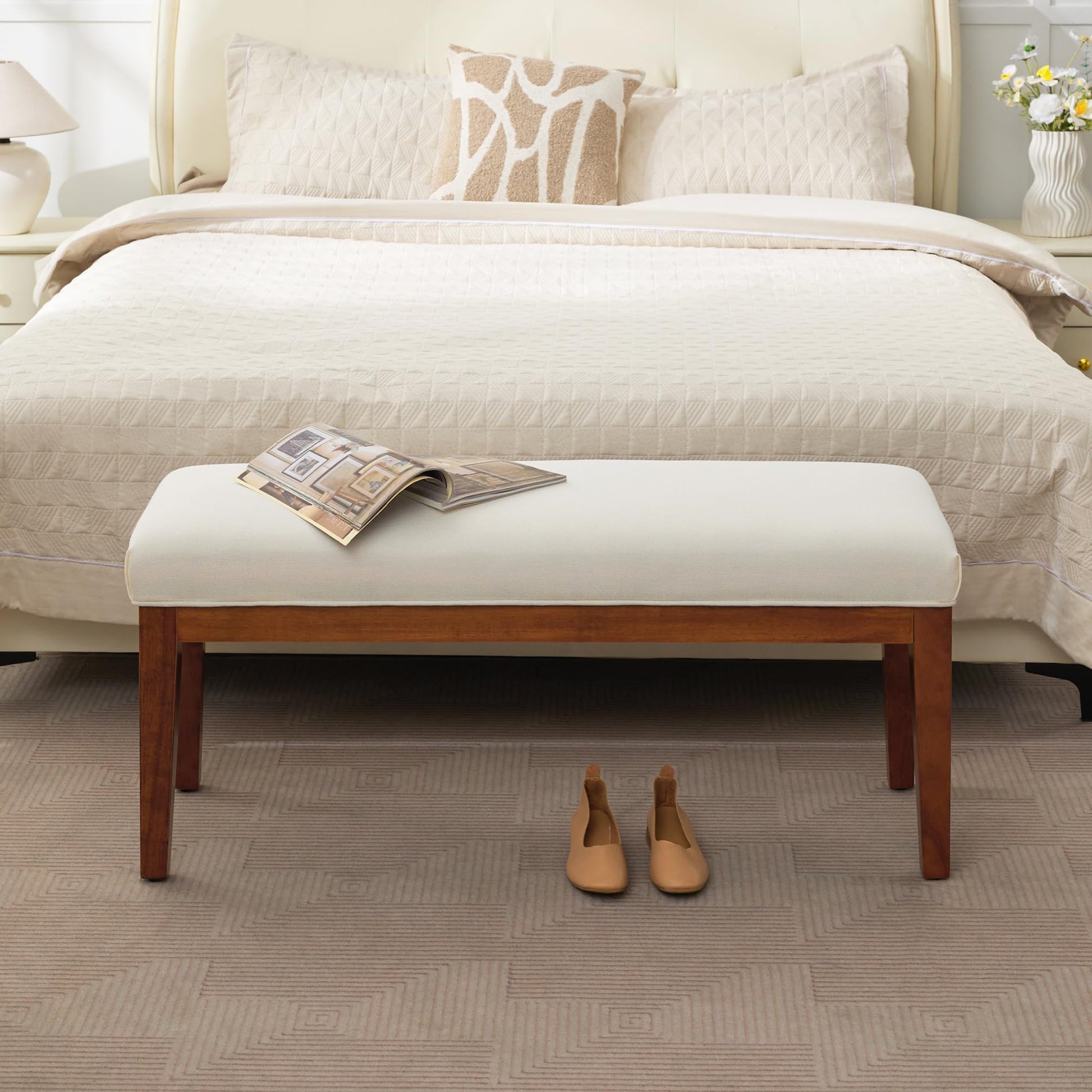43.5'' Linen Bedroom Bench, Upholstered End of Bed Bench, Padded Vintage Dining Bench, Entryway Bench with Solid Wood Legs, Kitchen, Living Room, Hallway, White