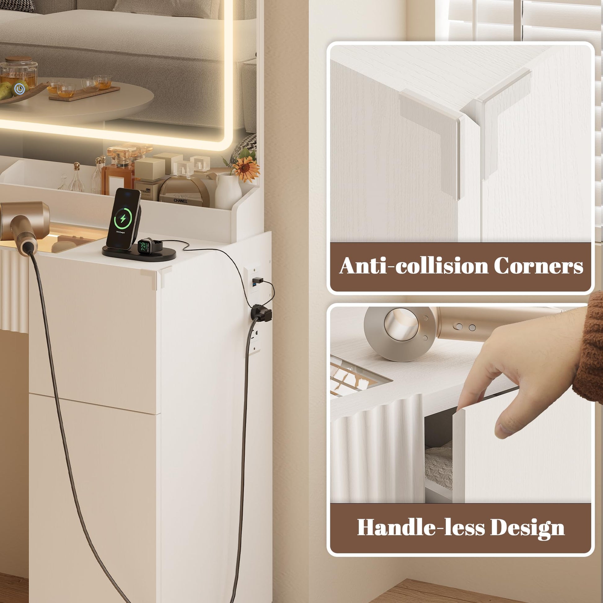 - 【Ample Storage Space】white vanity with lighted mirror offers a compact design without compromising on storage capacity. With 2 drawer, 3 shelves, and a acrylic 2-tier storage cabinet, you can easily store and access all your makeup essentials, jewelry, perfumes, hair straighteners, and more.