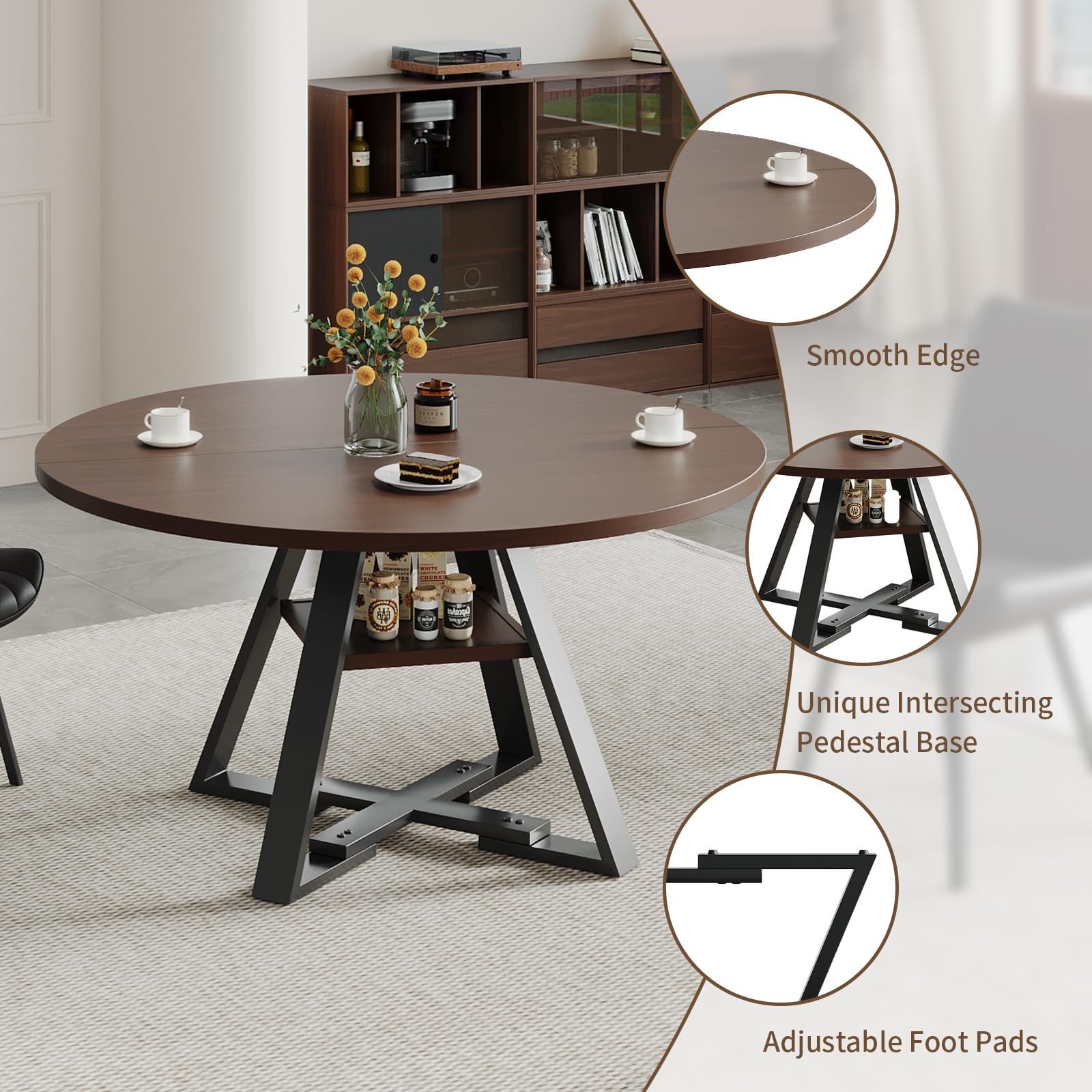 45.3" Walnut Round Dining Table Set with 4 Chairs – Mid-Century Modern Small-Space Kitchen & Dining Room Furniture for Apartment or Breakfast Nook (Walnut – Storage Table + 4 Black Chairs)
