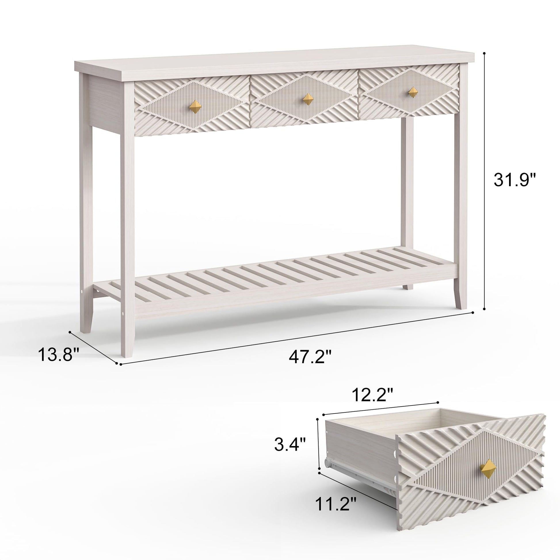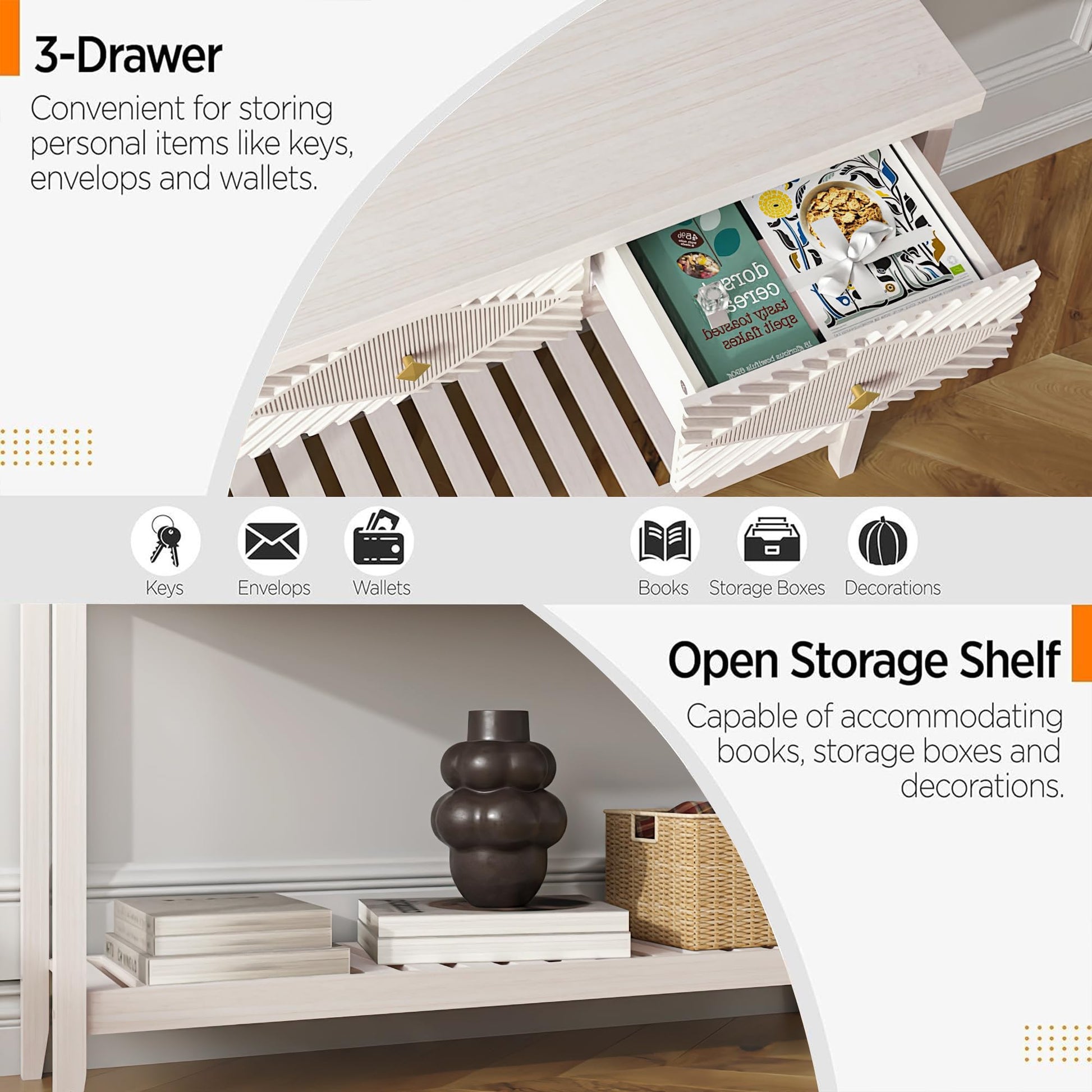 47" Console Table with 3 Drawers, Fluted Wood Entryway Table with Storage Shelf, Narrow Long Sofa Table Modern Behind Couch Accent Table for Living Room, Entryway, Hallway, Foyer