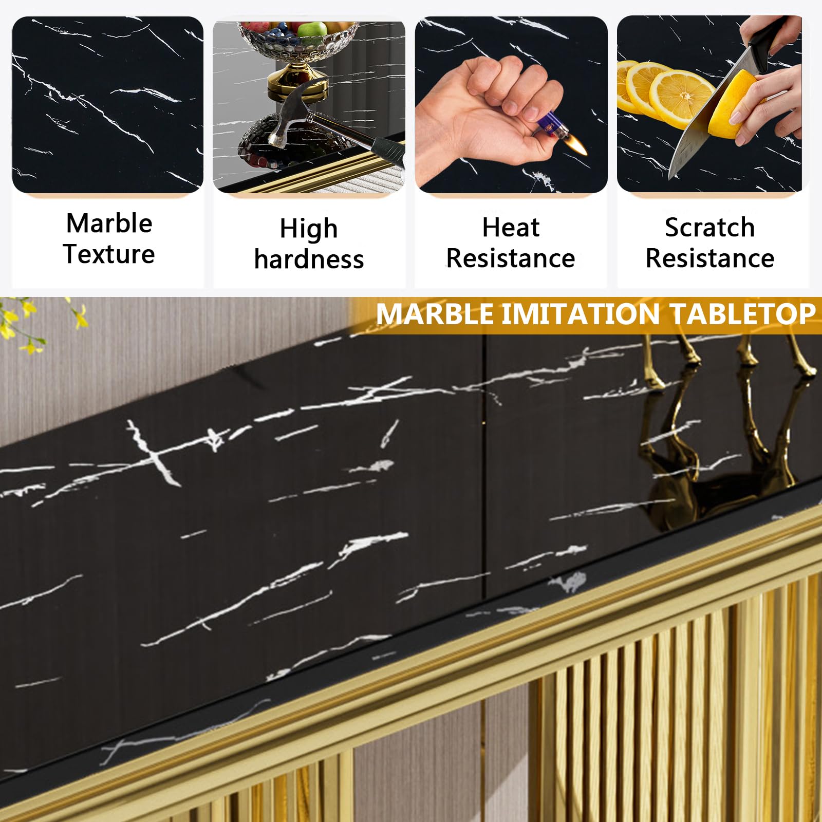 - ☕【Elegant Marble Console Table】- The combination of black faux marble texture top and unique double column-shaped mirrored gold finish stainless steel pedestal base creates modern aesthetics and a glamorous visual effect. Elegant modern style and elegant appearance add a unique personality, makes this beautiful faux marble console table a perfect addition to any home decor.