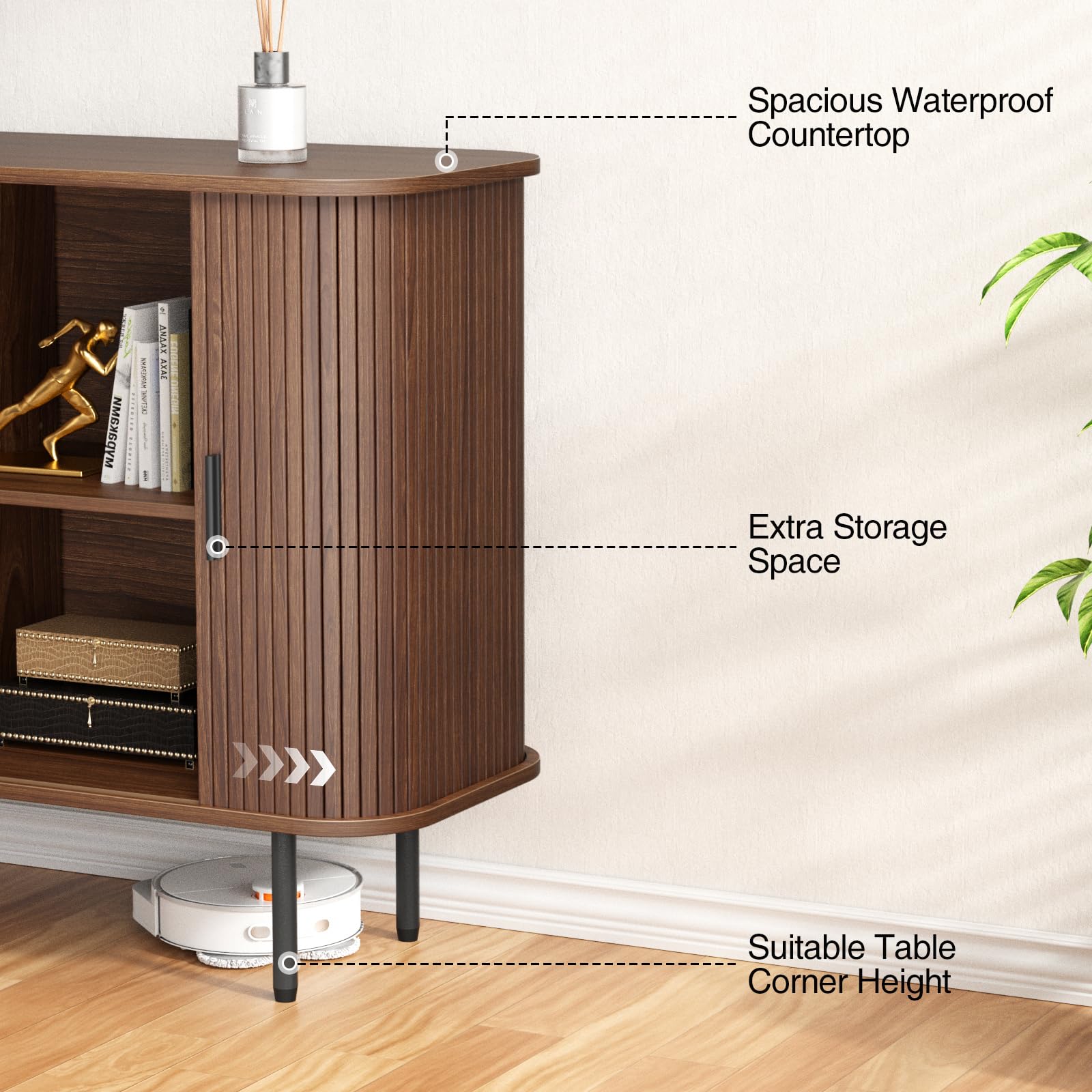 47''W x 32''H Walnut Storage Cabinet, Fluted Sideboard Buffet Cabinet with Storage, Console Table Credenza with Tambour Slatted Sliding Doors, TV Stand for Living Room, Kitchen