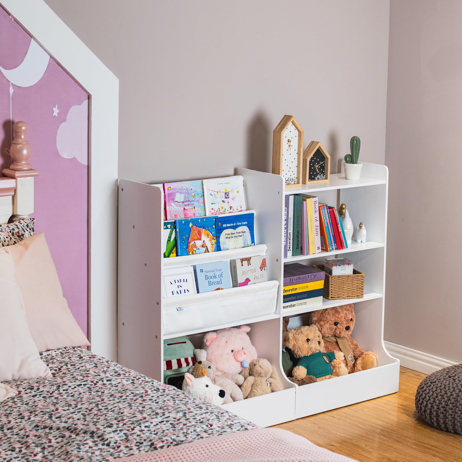 - 【TODDLER BOOKSHELF FOR VERSATILE ROOMS】This wooden toy and book storage for kids can be used as a nursery bookshelf, playroom toy organizer, classroom bookshelf, or bedroom toy shelf. It will help your children develop good organization habits, keep their rooms clean and tidy, and create a good reading atmosphere.