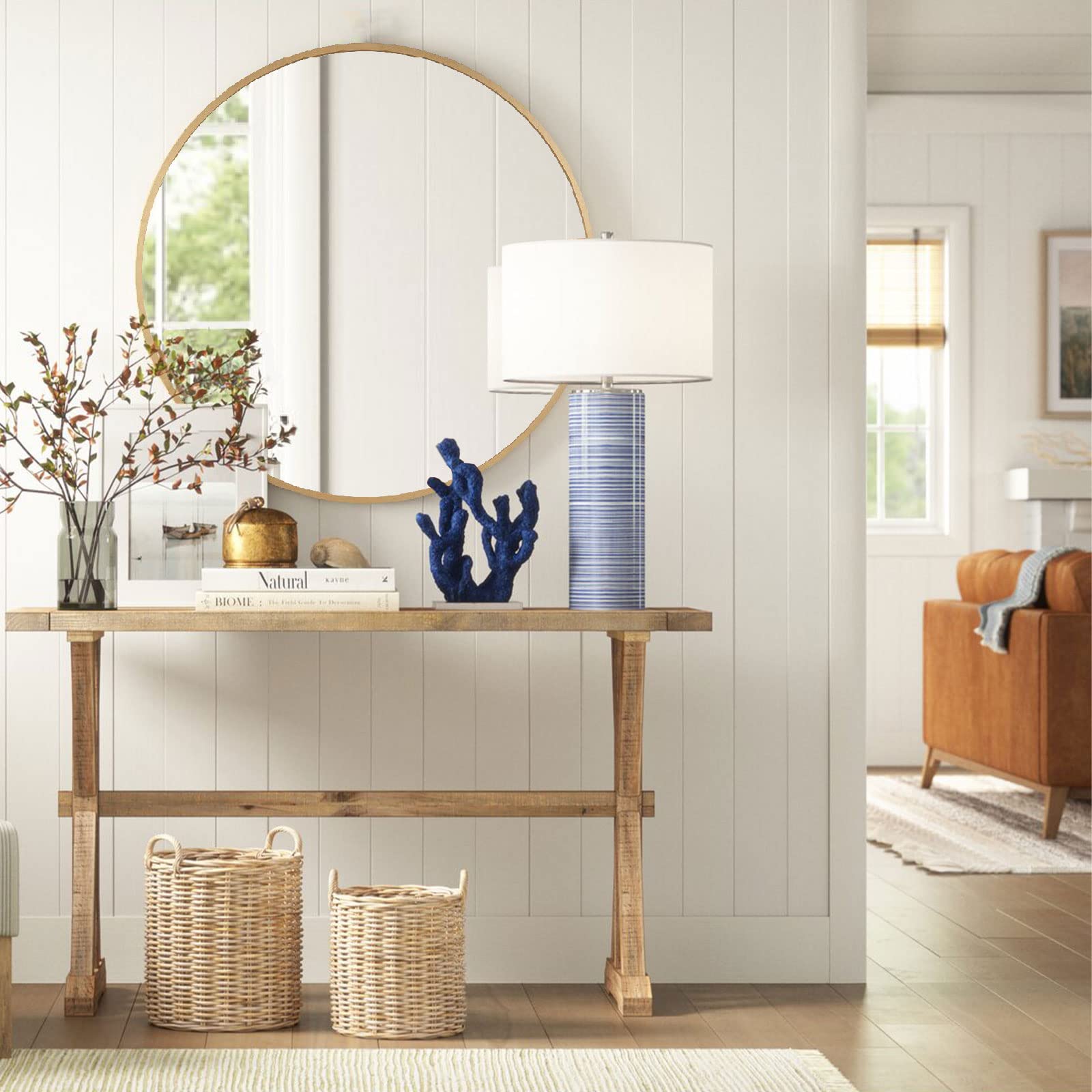 - DECORATIVE CIRCLE MIRROR: This 48" round wall mirror is the ideal size for a living room, entryway or bathroom. The elegant gold thin round mirror frame accentuates the room and matches any decor