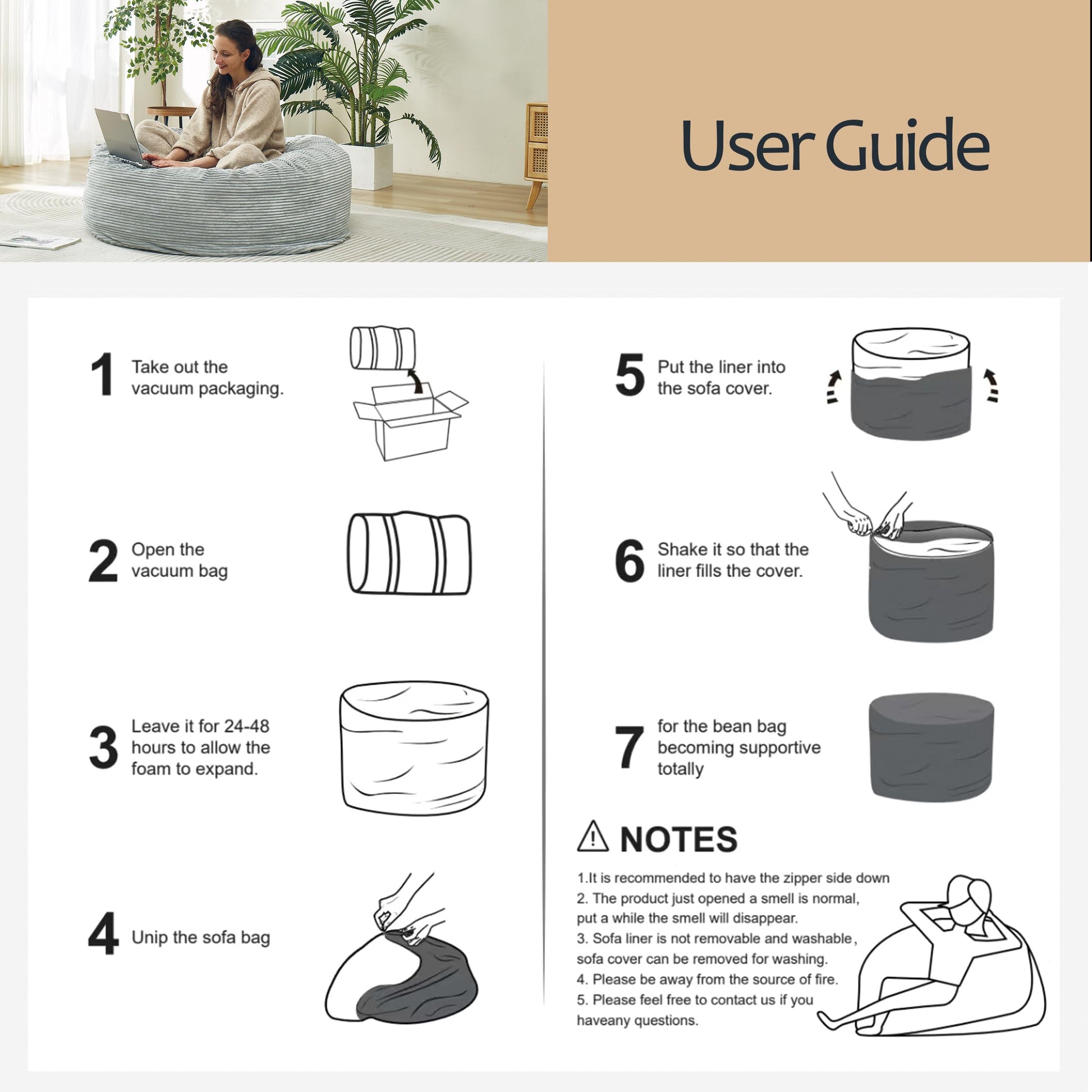 - Perfect Size for Adults and Teens: Measuring 48 inches in diameter, our bean bag chairs are ideal for both adults and teens, suitable for dorm rooms, living rooms, and gaming areas.