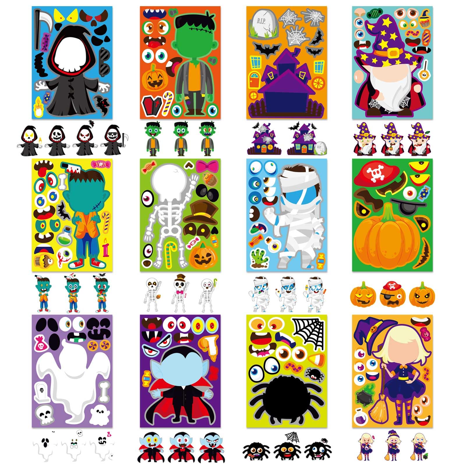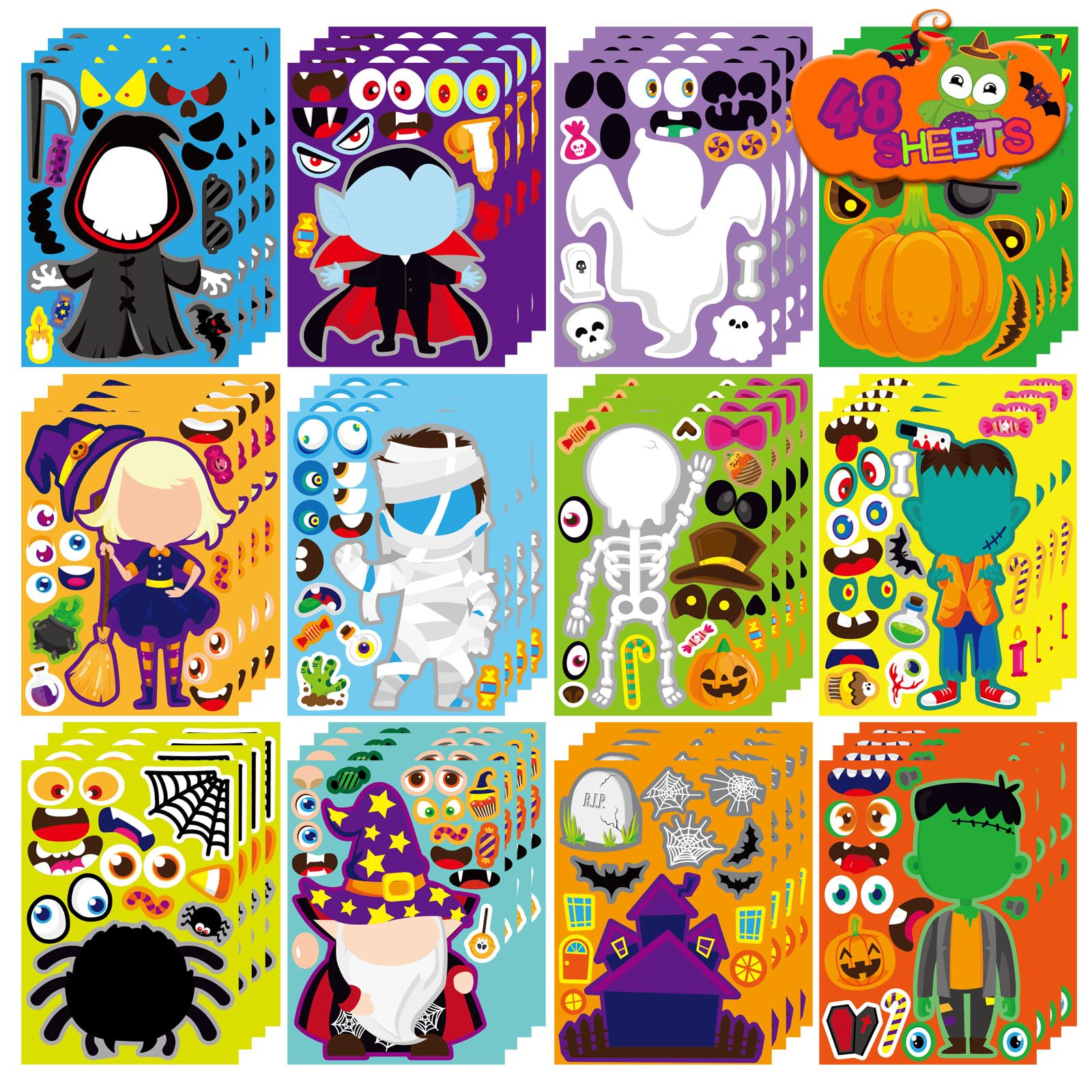 48 PCS Halloween Make-a-face Stickers Halloween Characters Stickers for Kids Make Your Own Mix and Match Sticker DIY Crafts Decorating Toy Sticker Trick or Treat Party Game Activities