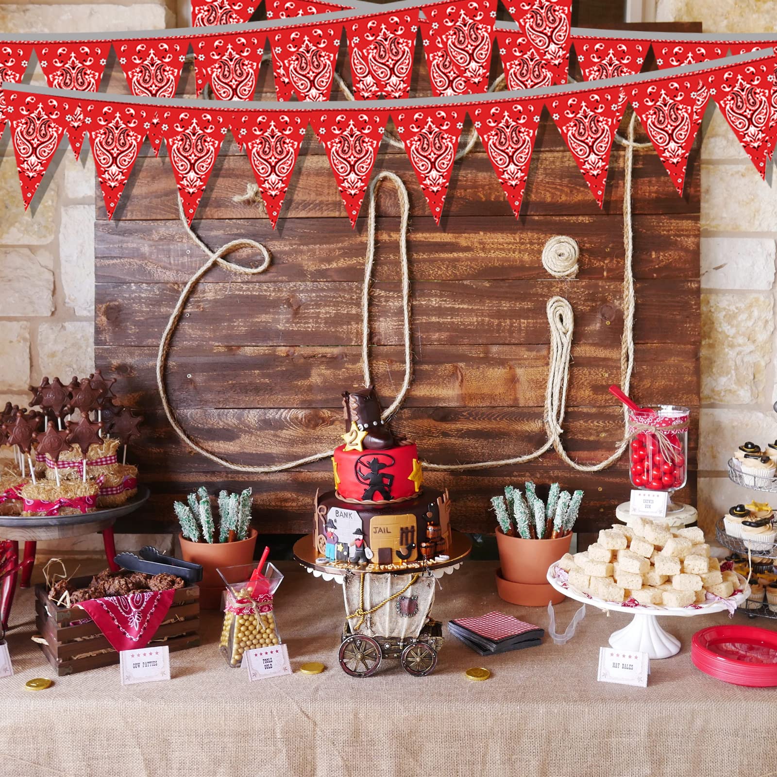 - 【Easy to Use】: All 6 sets of cowboy western party decorations paper pennant banners are pre-strung, which will save you the hassle of assembly. Western Cowboy triangle banner flags are very easy to hang and decorate both indoors and outdoors, such as homes, nurseries, walls, bedrooms, dining rooms, ceilings, mantels, fireplaces, windows, gardens, schools, fences, restaurants, and bars. The ceiling creates a chic atmosphere that your guests will love!