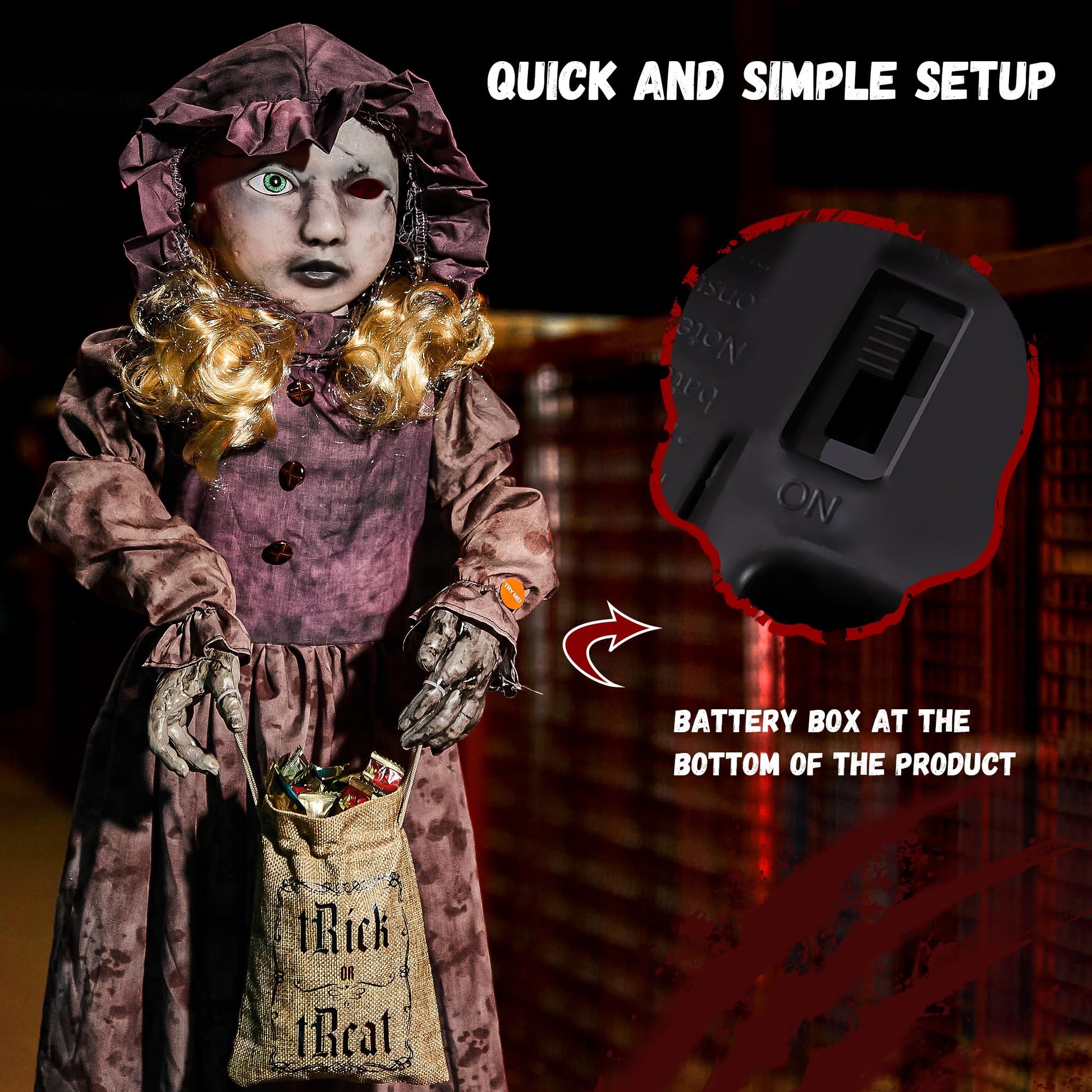 - Easy Activation for Instant Scares: Our animated Halloween decorations feature sound and touch activation. A scream, clap, or touch will bring the creepy doll to life, instantly enhancing your Halloween party with a strong, eerie vibe. Perfect for graveyard scenes, Halloween props, home yards, or daily courtyard parties, this scary doll is a must-have for creating a scary Halloween decorations experience.