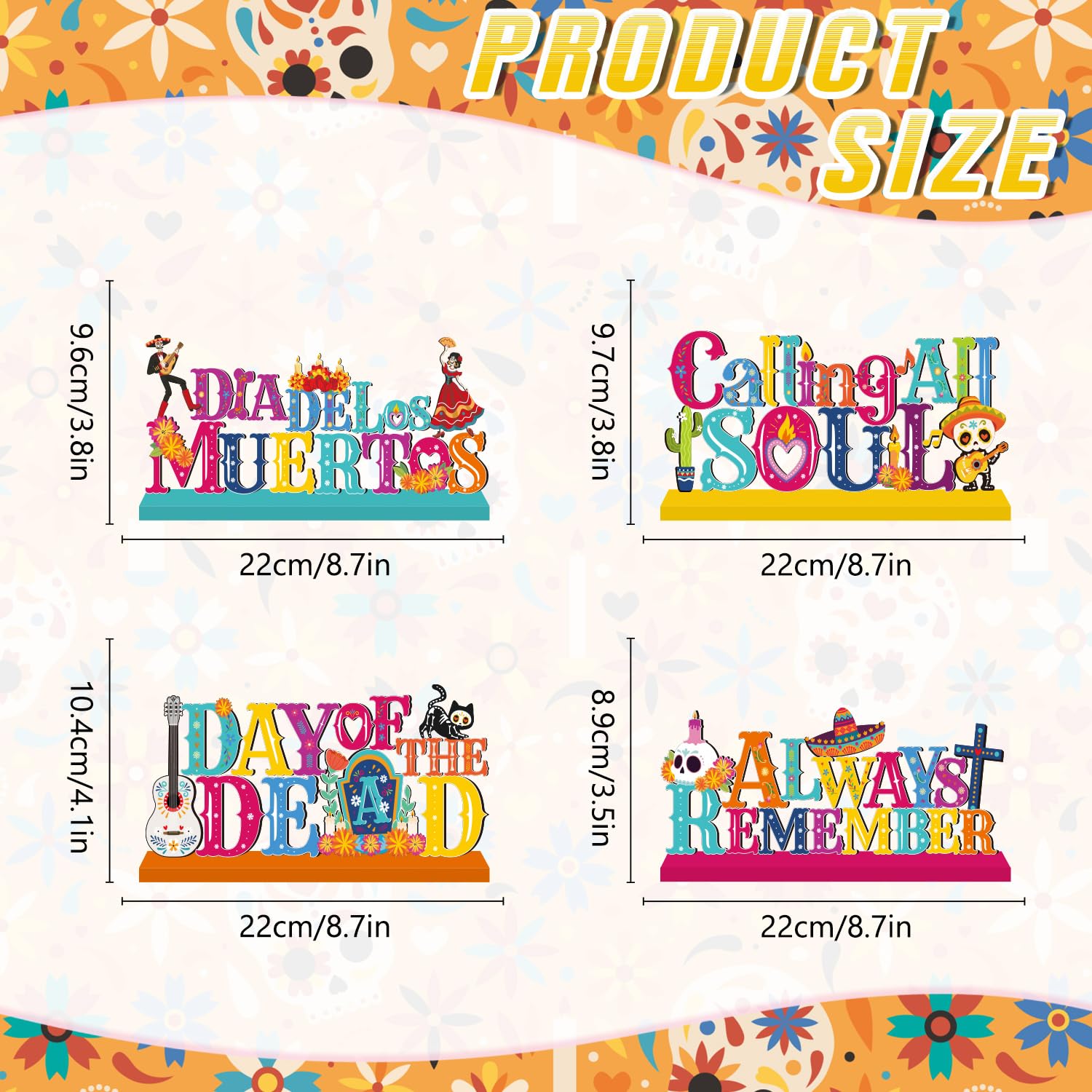 - Package content: you will receive 4 pieces of dia de los muertos decorations for table, printed with iconic phrases with "Dia de los Muertos", "Always Remember", "Day of the Dead", "Calling All Souls", dimensions are respectively 8.7 x 3.8 inch, 8.7 x 3.8 inch, 8.7 x 4.1 inch, 8.7 x 3.5 inch, which is a nice combination with rich styles and Appropriate size that can well meet your decoration needs at the Day of the Dead party