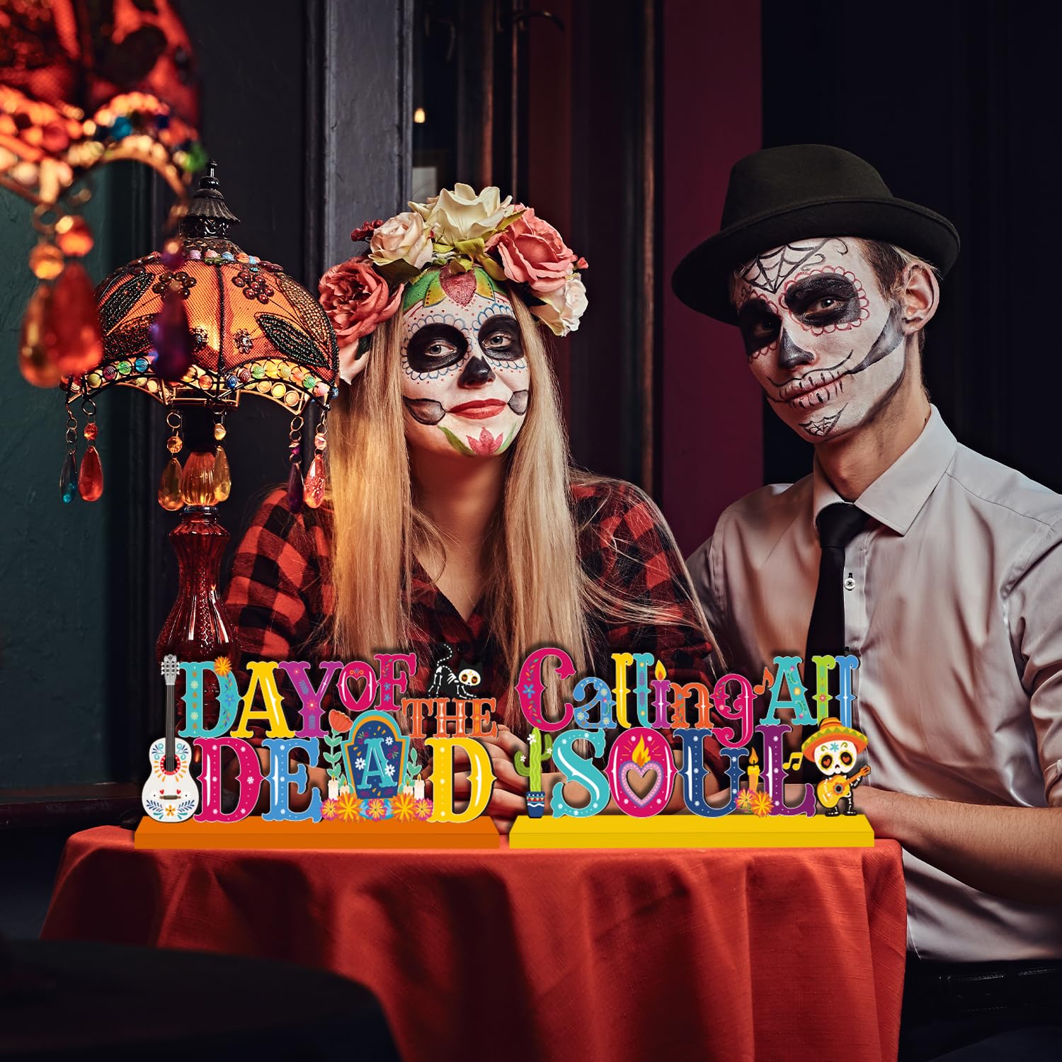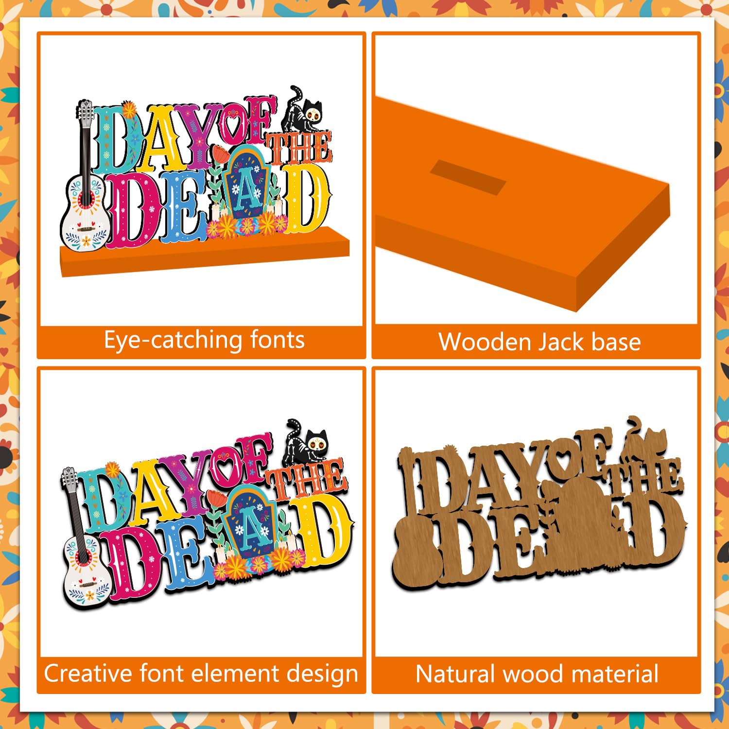 4Pcs Dia De Los Muertos Decorations Wooden Table Centerpieces Day of The Dead Decorations Mexican Table Decor Dia De Los Muertos Table Topper Sign for Halloween Mexican Carnival Party Decor