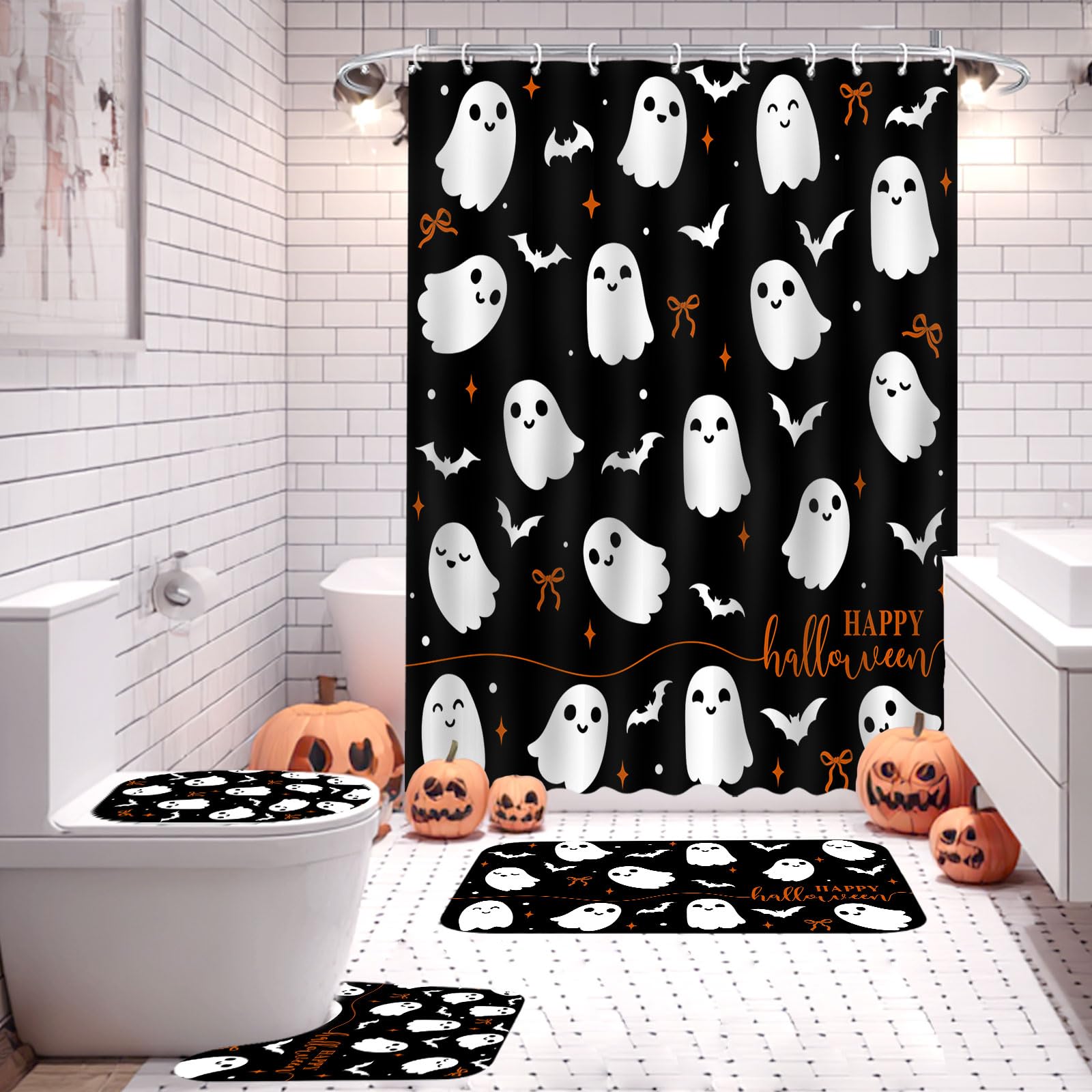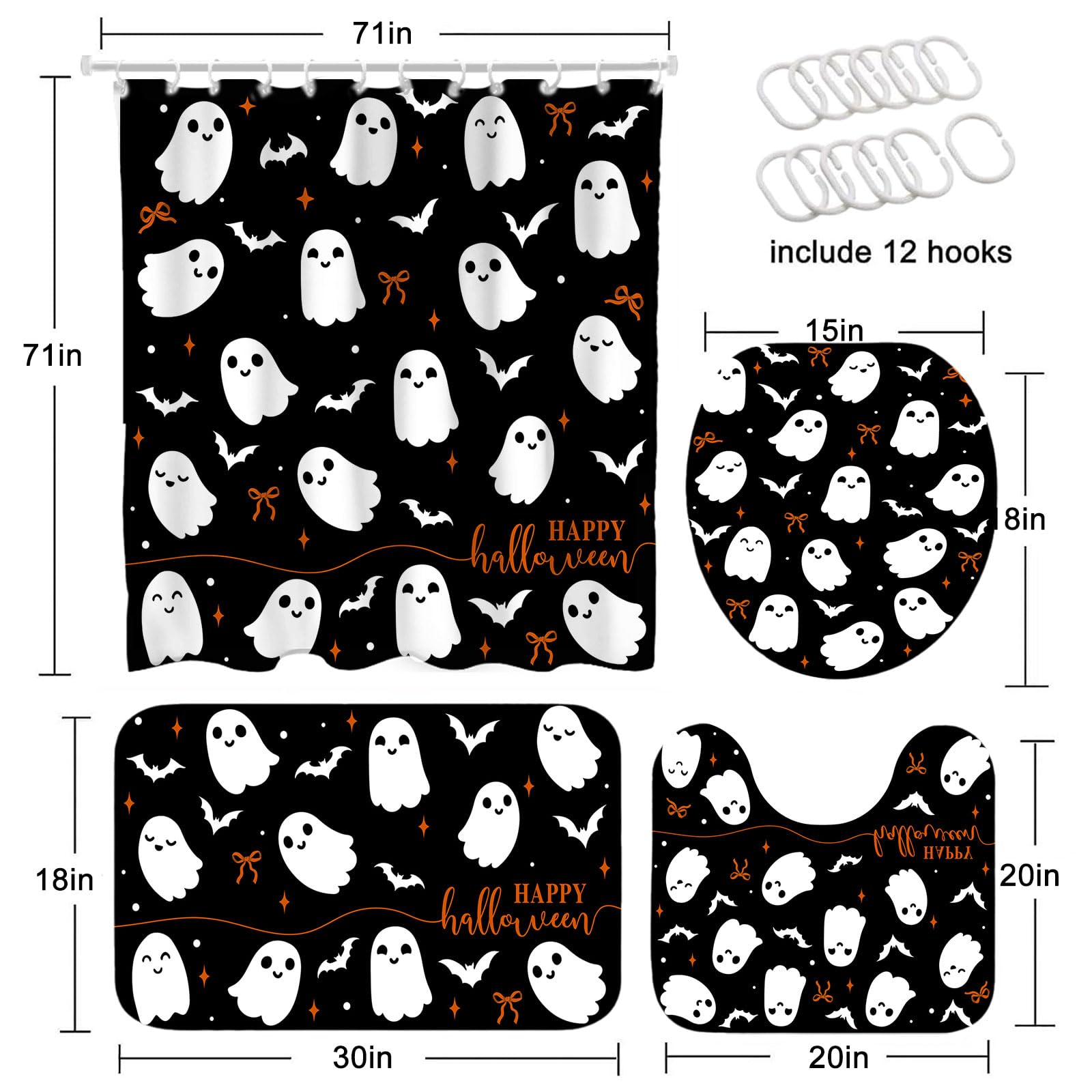 - CUSTOMER SERViCES: The pack includes a Halloween ghost shower curtain set and 12 hooks. We will provide our customers with quality products. lf you have any problem about our products, please feel free to contact us