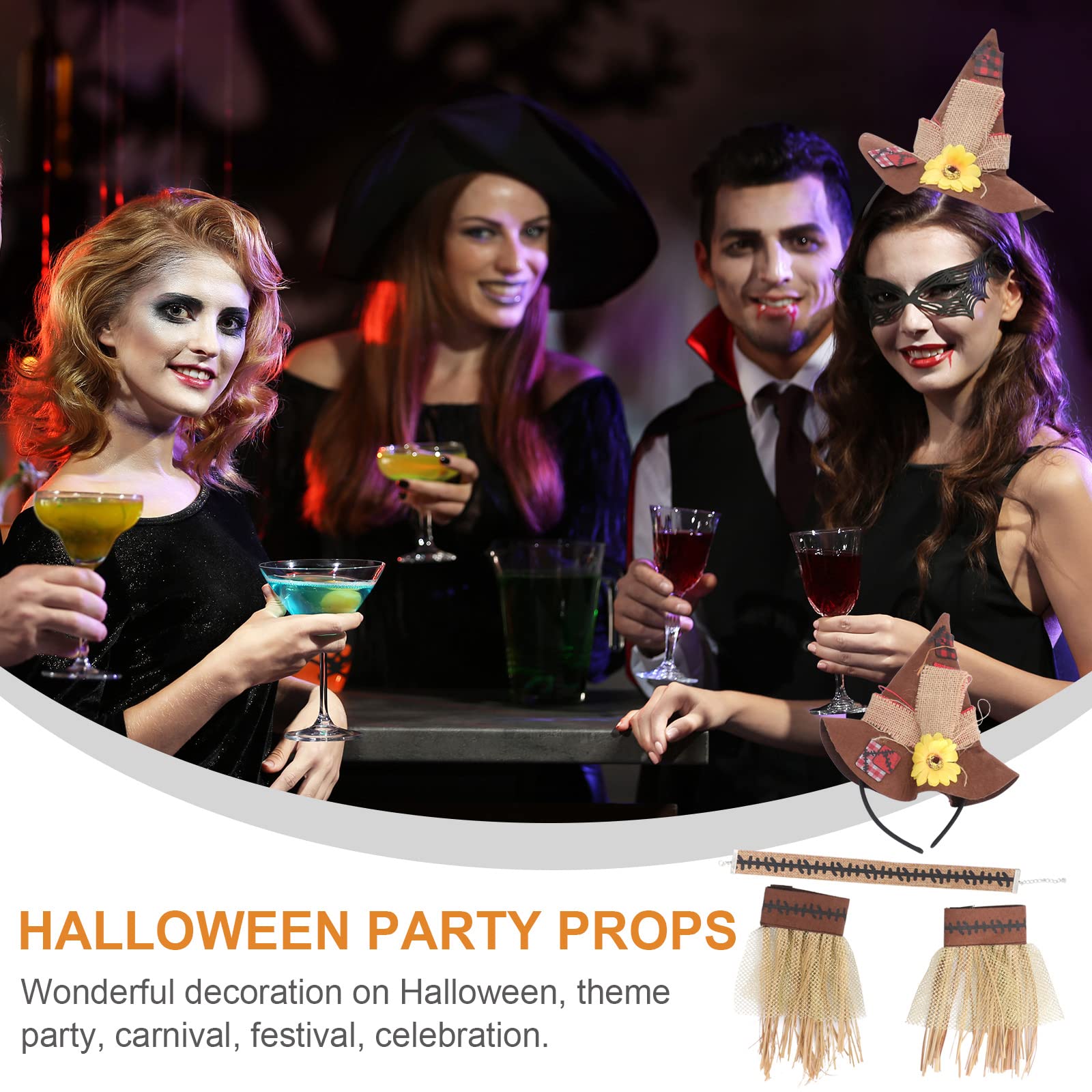 4Pcs Halloween Straw Hat Costumes Straw Sunflower Wizard Hat with Necklace Wristband Decoration for Harvest Carnival Cosplay Adornment