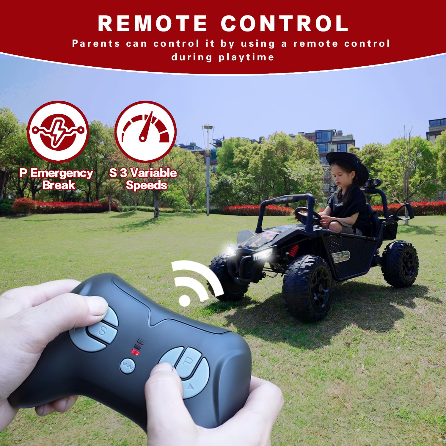 - 2WD/4WD SWITCHABLE: Easily switch between 2WD and 4WD on this 2 seater battery powered car for kids to adapt to different terrains, ensuring a safe and fun experience. The kids 2 seater motorized vehicles offers a more thrilling experience in 4WD mode, while 2WD extends driving time