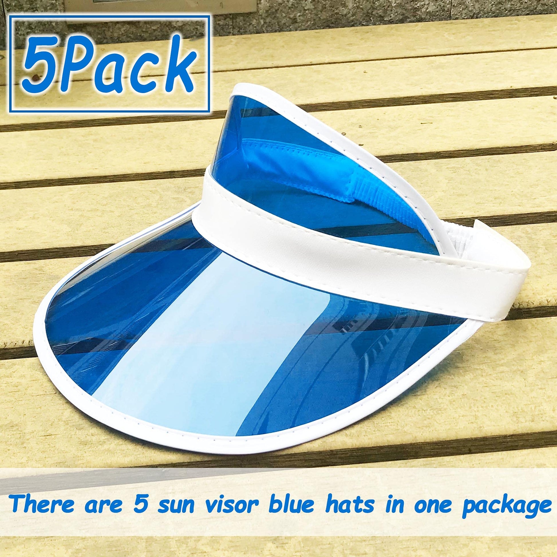 5 Pack Sun Visors Women Hat UV Protection Unisex Retro Candy Color Clear Cap Sports Outdoor Transparent Golf Party Beach (Blue)