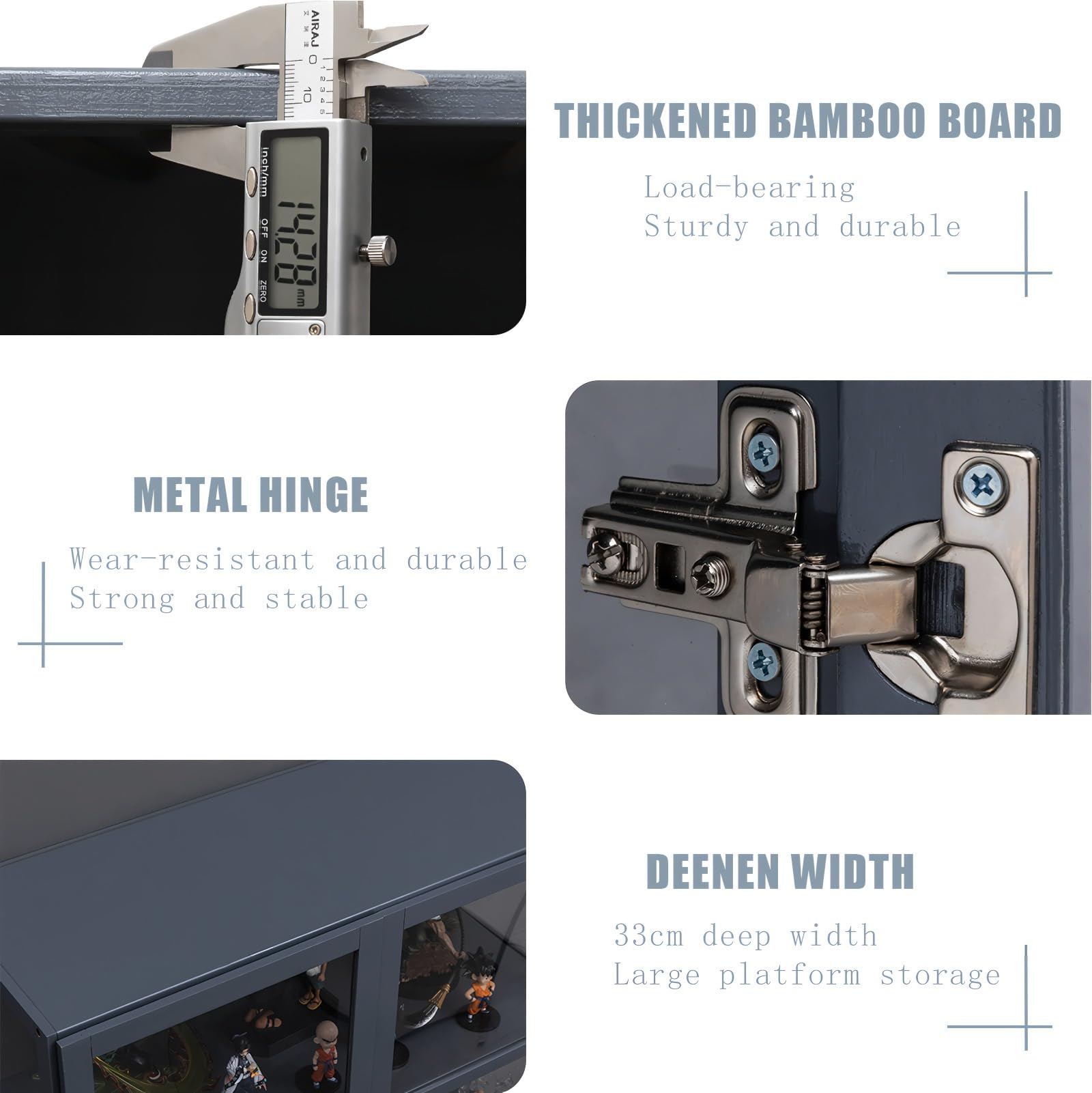 - 【High Quality Material】- The display cabinet is made of acrylic panel and solid bamboo boards, which ensure the stability of the display cabinet and provide long-time service. The bamboo material won't be affected by damp or rainy days.
