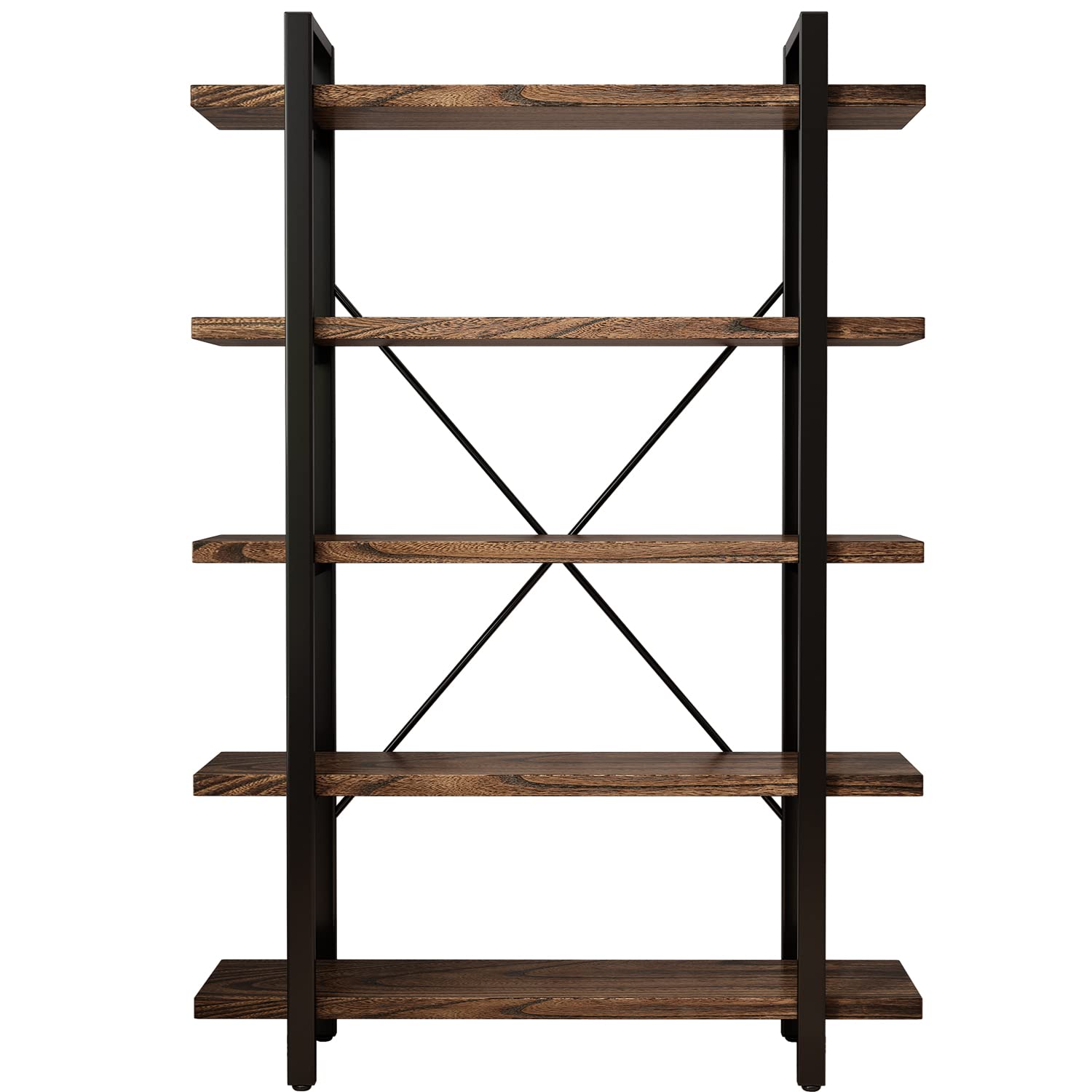 5-Tier Industrial Style Solid Wood Bookcase and Book Shelves,Rustic Wood and Metal Shelving Unit, Living Room,Modern Rustic Open Industrial Book Shelf Office,Distressed Brown (AY-02-5Tier)