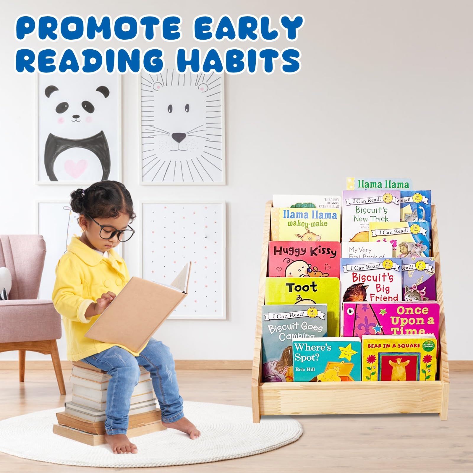 - Promotes Independence: The front-facing tiers display the covers of children's favorite books, drawing their attention and making it easy for them to identify and pick out their books. This design encourages independence and an early love for reading.