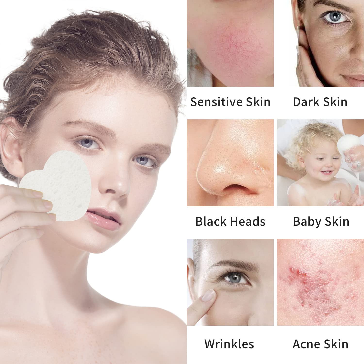 - Multi-Purpose Sponge: Gentle enough for daily face wash, deep pore cleansing, exfoliating, removing facial masks and makeup. These sponges are suitable for all skin types, sensitive, tender skin types included.