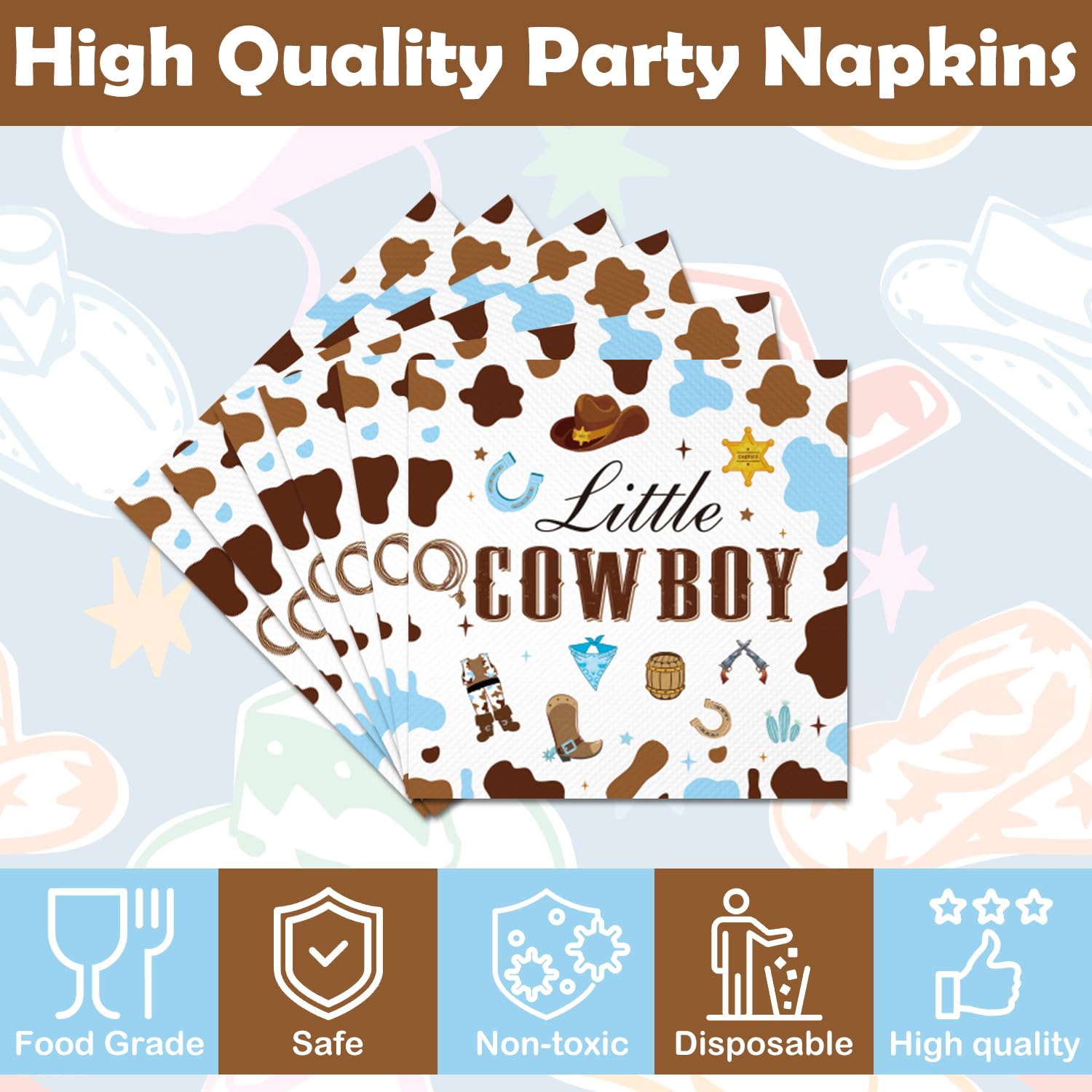 50PCS Cowboy Baby Shower Napkins - A Little Cowboy is on the Way Baby Shower Paper Napkins Western Rodeo Little Cowboy Disposable Napkins 6.5" x 6.5"