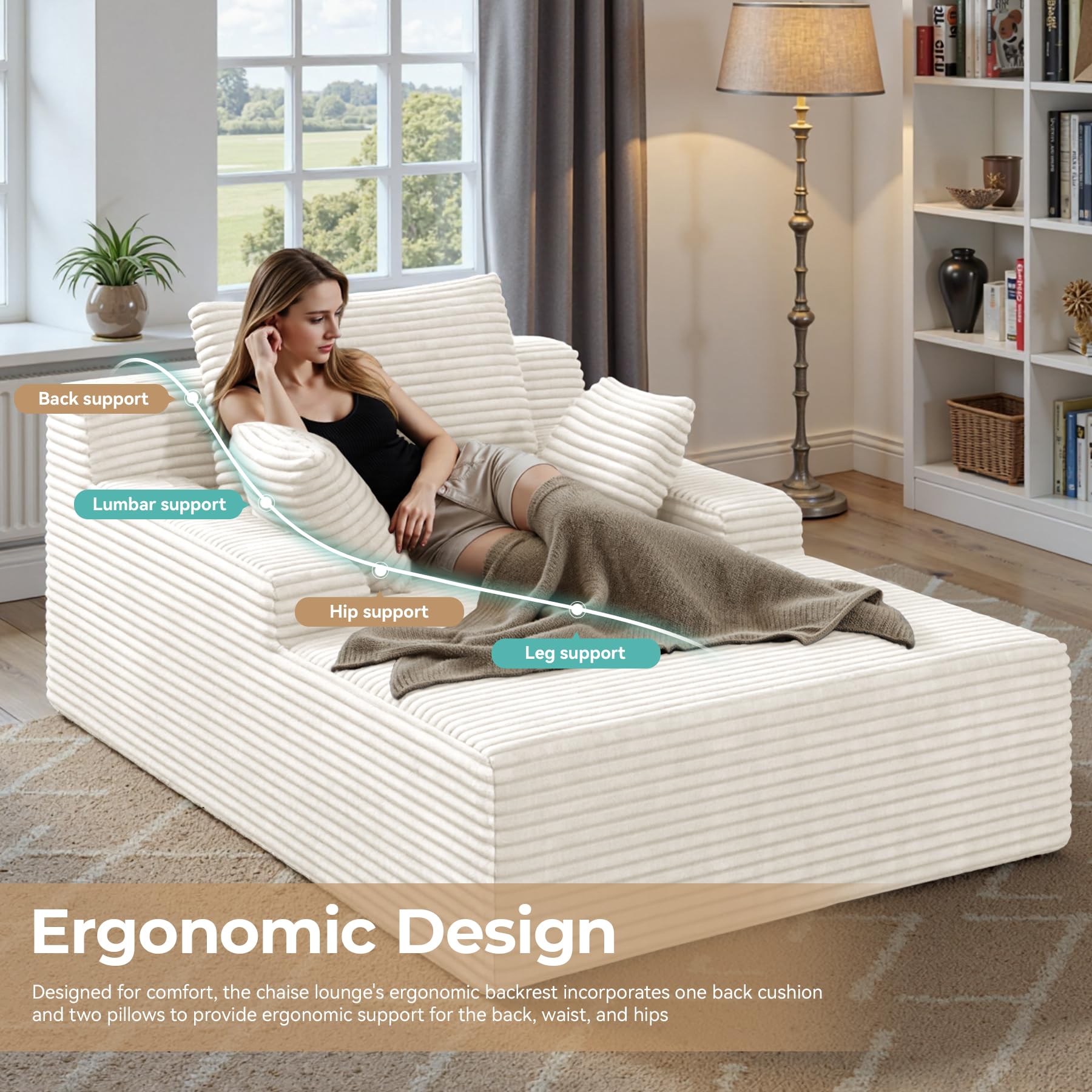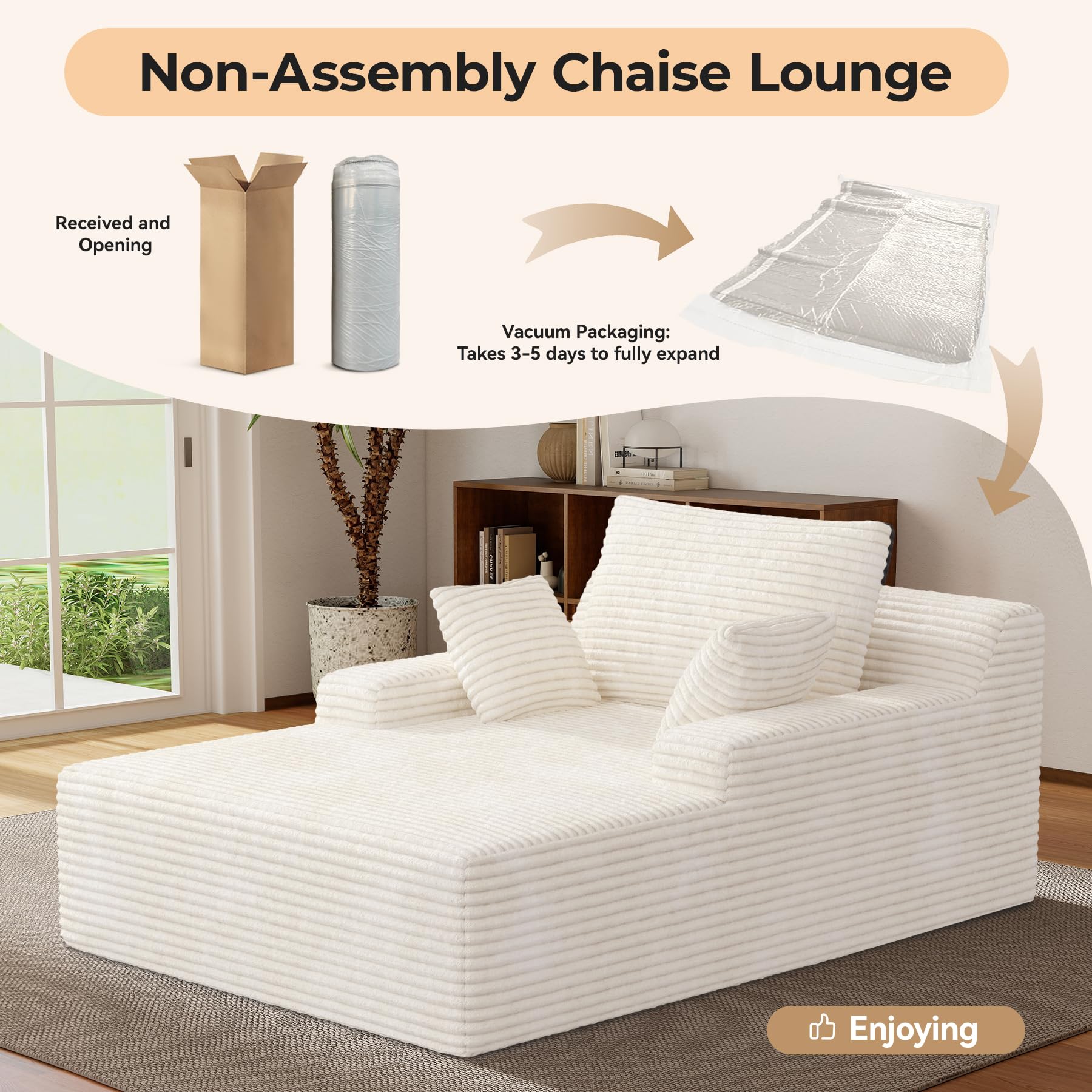51'' Oversized Chaise Lounge Chair Indoor, Non-Assembly Deep Seat Sofa Bed Corduroy Sleeper Cloud Couch with 2pcs Pillows for Reading Living Room-Beige