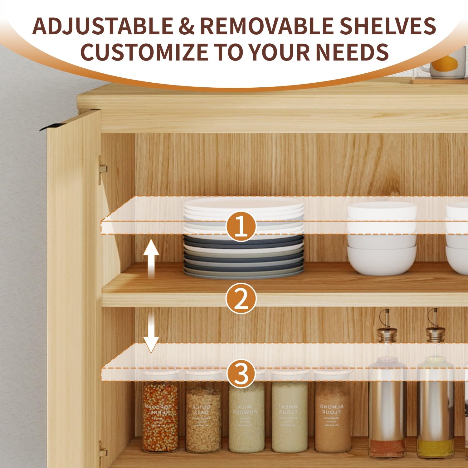 - [Durable & Elegant Construction] Crafted from high-quality MDF, this cabinet is built for lasting stability and resilience. The natural wood grain finish and clean lines offer a refined look, while sturdy construction ensures it can handle everyday use in your dining room, living room, or hallway.