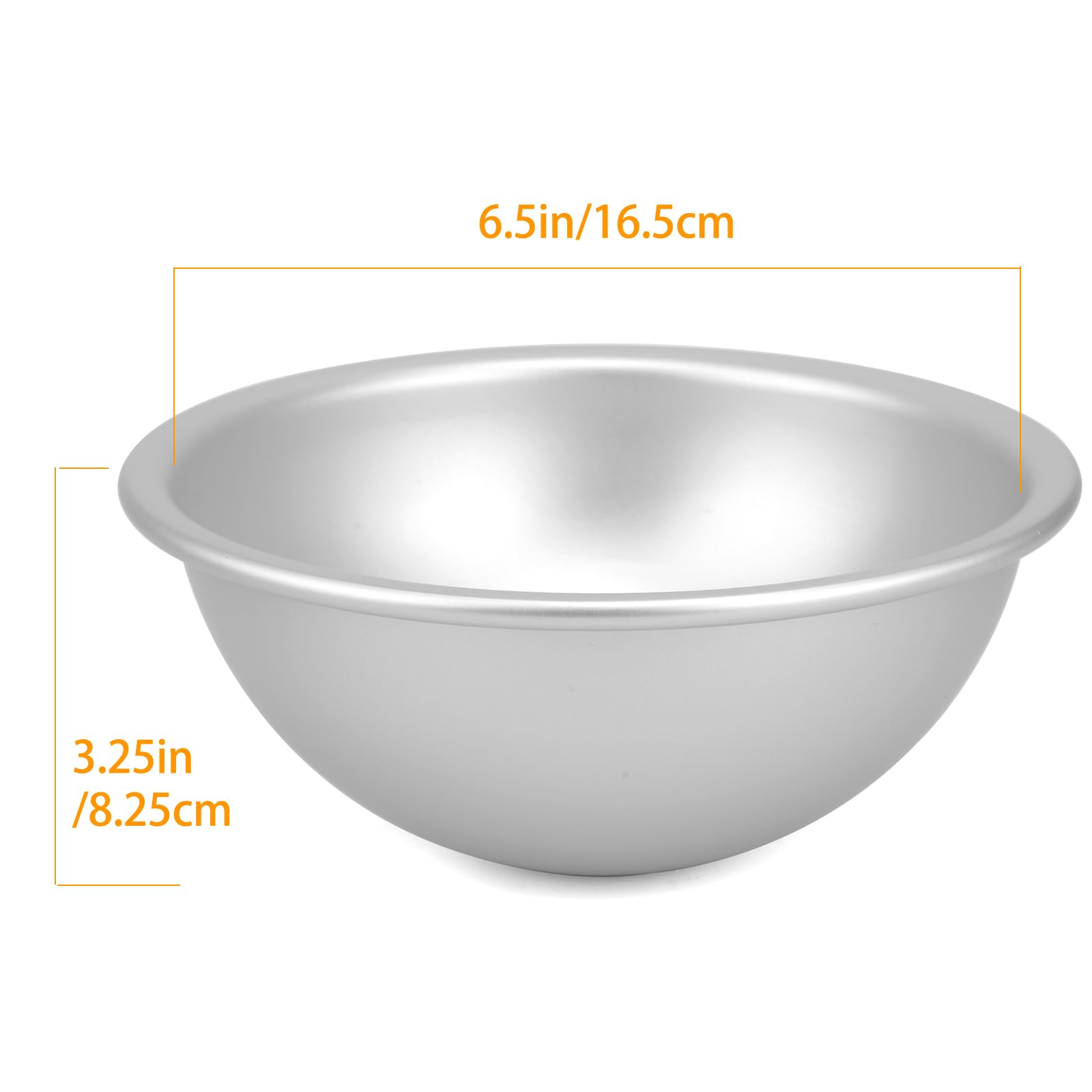 Details: Package Included 1 PCS Cake Pan, Size of the Cake Pan, height is 3 inches and the width is 6 inches. This hemispherical cake mold is made of aluminum alloy, which is anodized, not easy to deform, Our anodizing process creates a safer, stronger baking pan, can bake a wider variety of recipes.