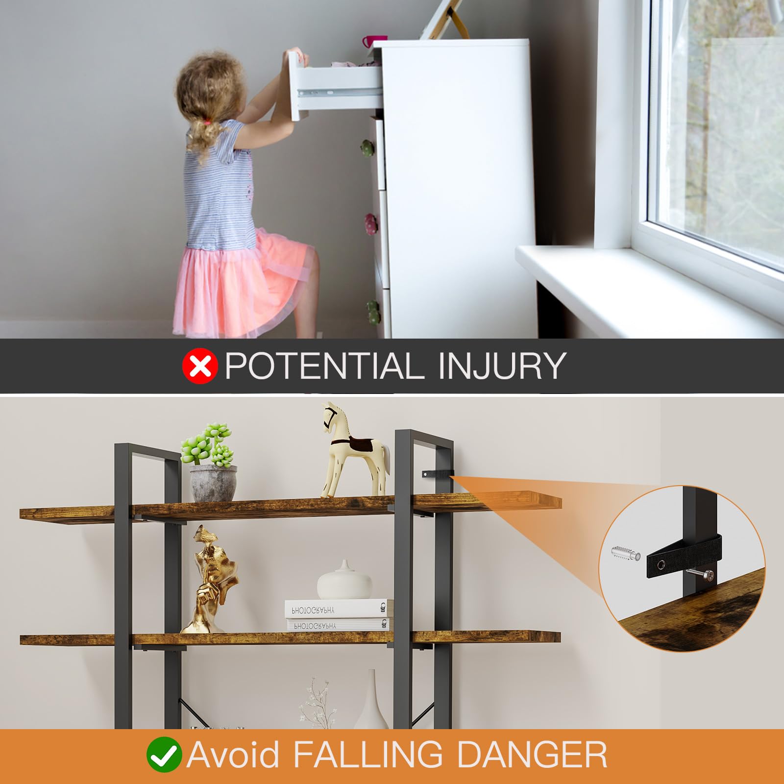 - 【Tipover Resistance Device】:To prevent bookshelf from dumping and scratching the floor, the parcel comes with 2 metal wall bracket