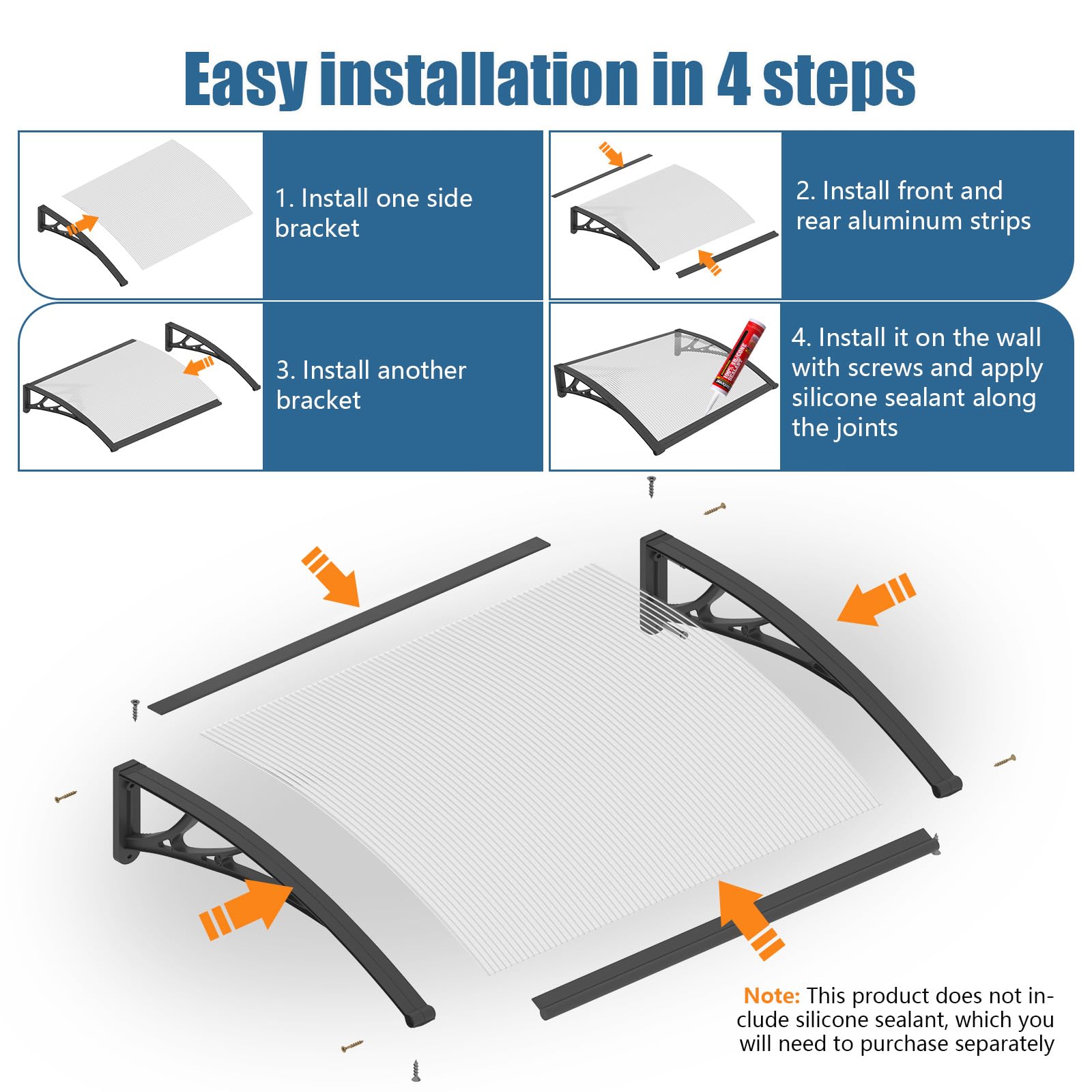 - Durable Materials:House Overdoor Awnings for Window Porch Door Entrance Outside,Made with thick double-layer polycarbonate overhang Canopy and reinforced ABS brackets, GUANSU-CN window door awnings Exterior offers exceptional strength and long-term stability. Designed to resist cracking, warping, and corrosion, it’s perfect for year-round outside use